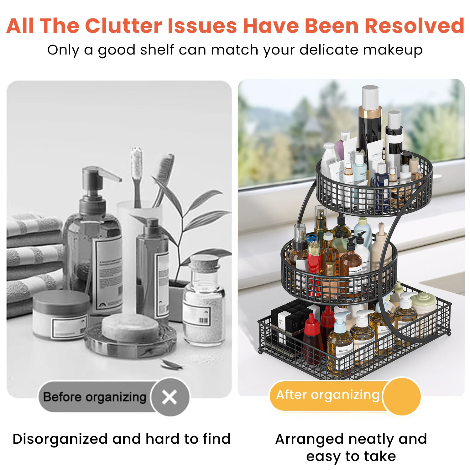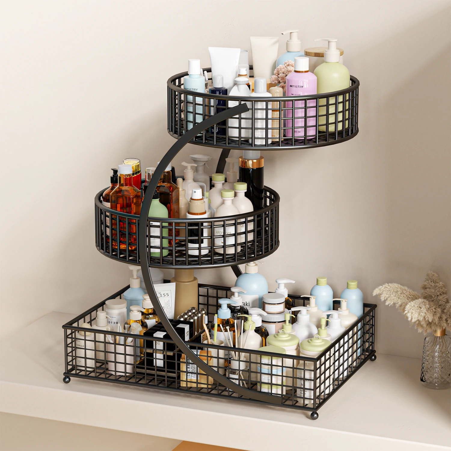 3-Tier Round Metal Storage Rack - No Assembly Required, Cosmetic Organizer, Fruit & Vegetable Basket, Kitchen Storage Gift