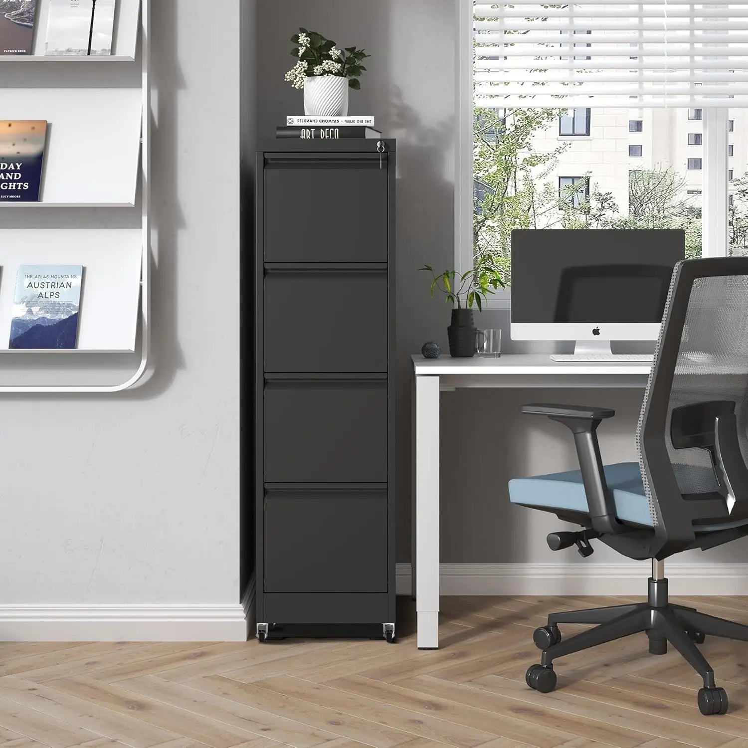 - 【Sturdy & Durable】The file cabinet with 4 drawer is made of environmentally friendly steel, durable, easy to clean, resistant to dent and warping, powder coating, and protection from scratches and rust. Heavy duty items such as printers, scanners and other equipment can be placed above the file cabinet, and the load capacity can be up to 450 pounds.