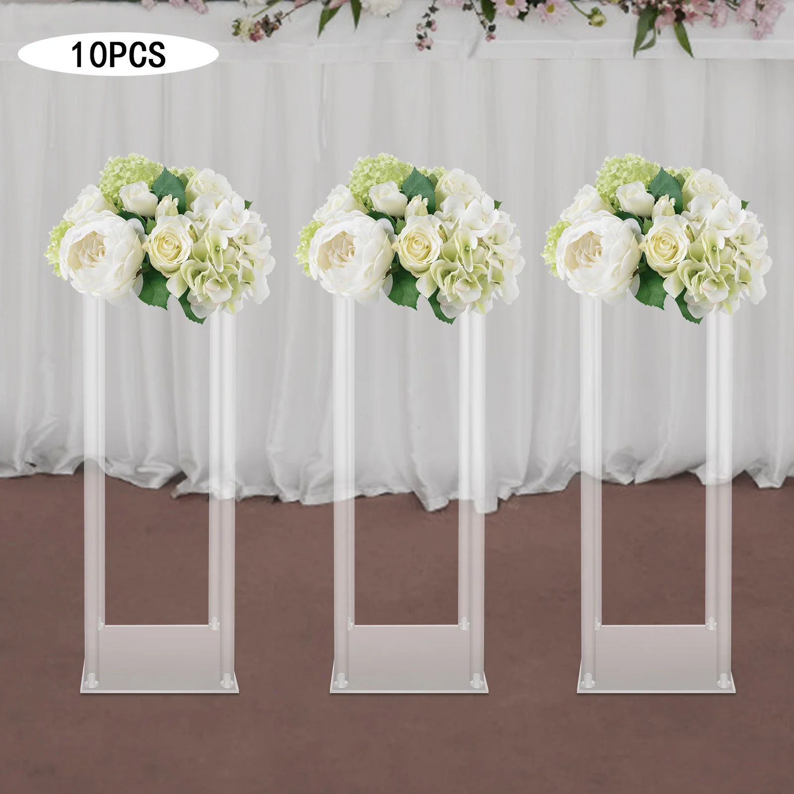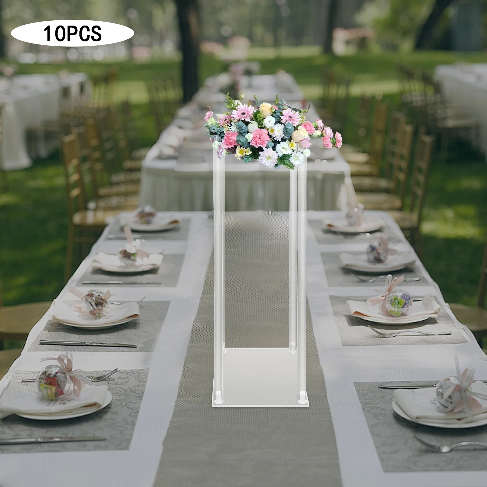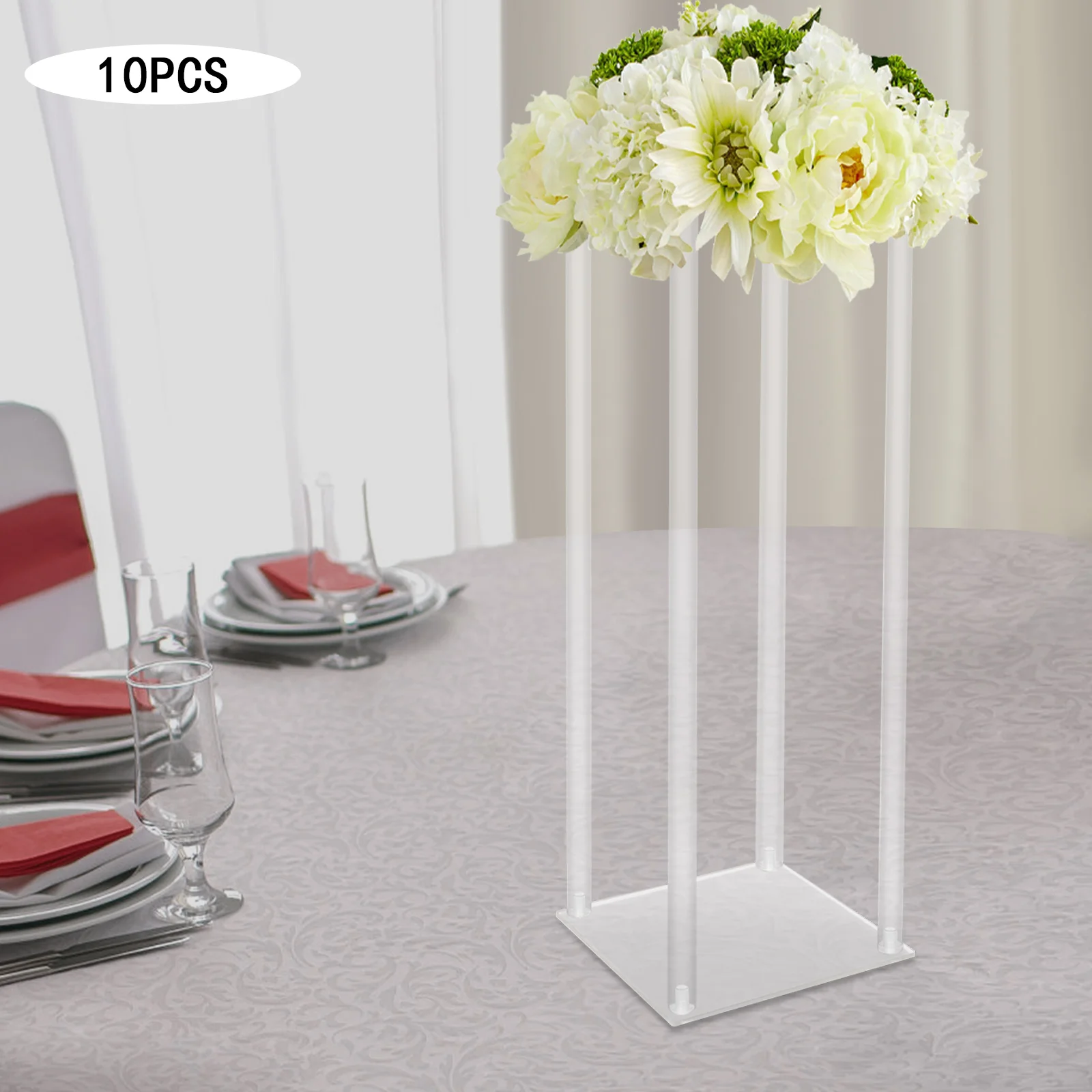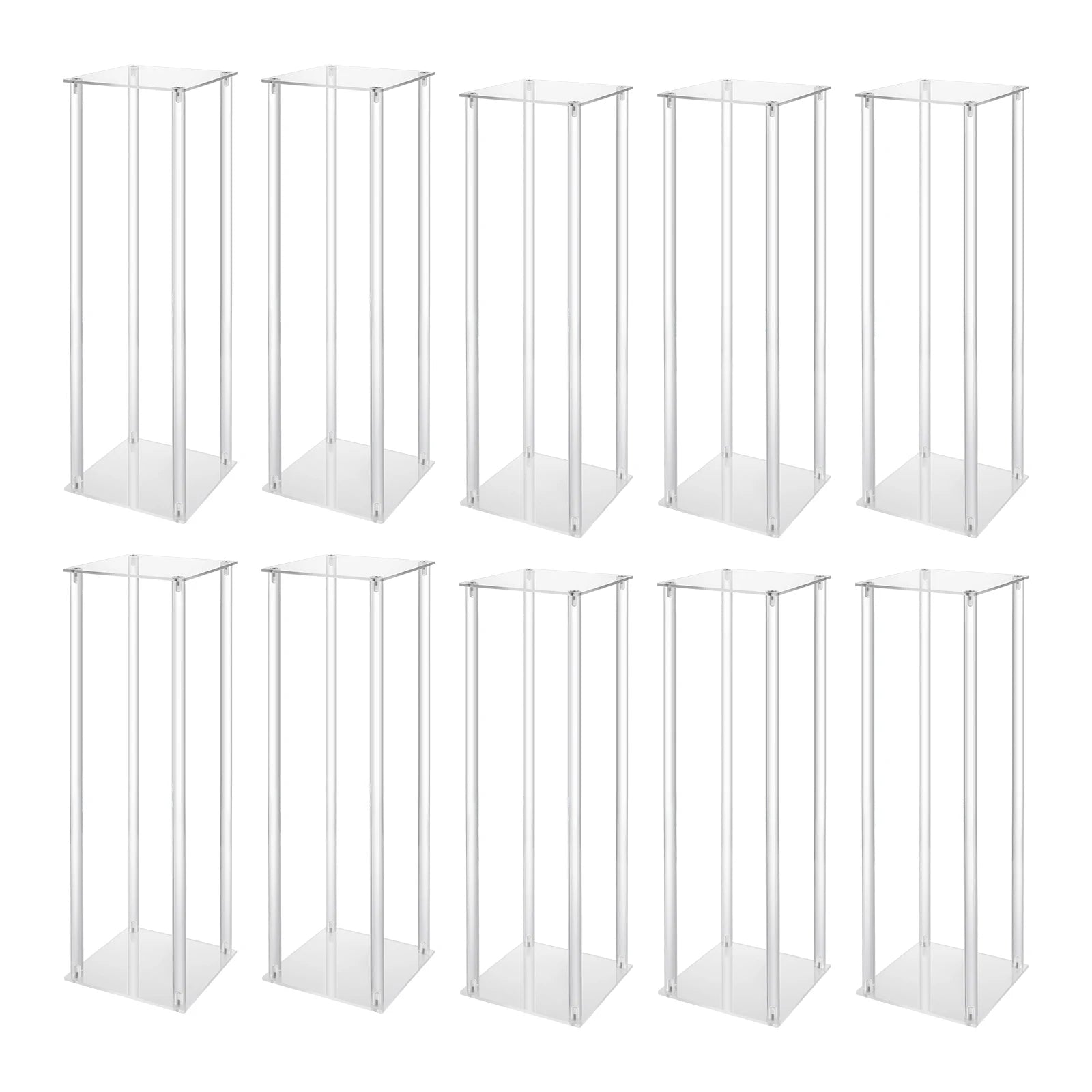 10Pcs Acrylic Vase Wedding Centrepieces Flower Stands Set, 23.6"H Free Standing Clear Rectangular Column Rack Geometric Display Stand for Home Party Wedding Banquet Decor (20*20*60cm)