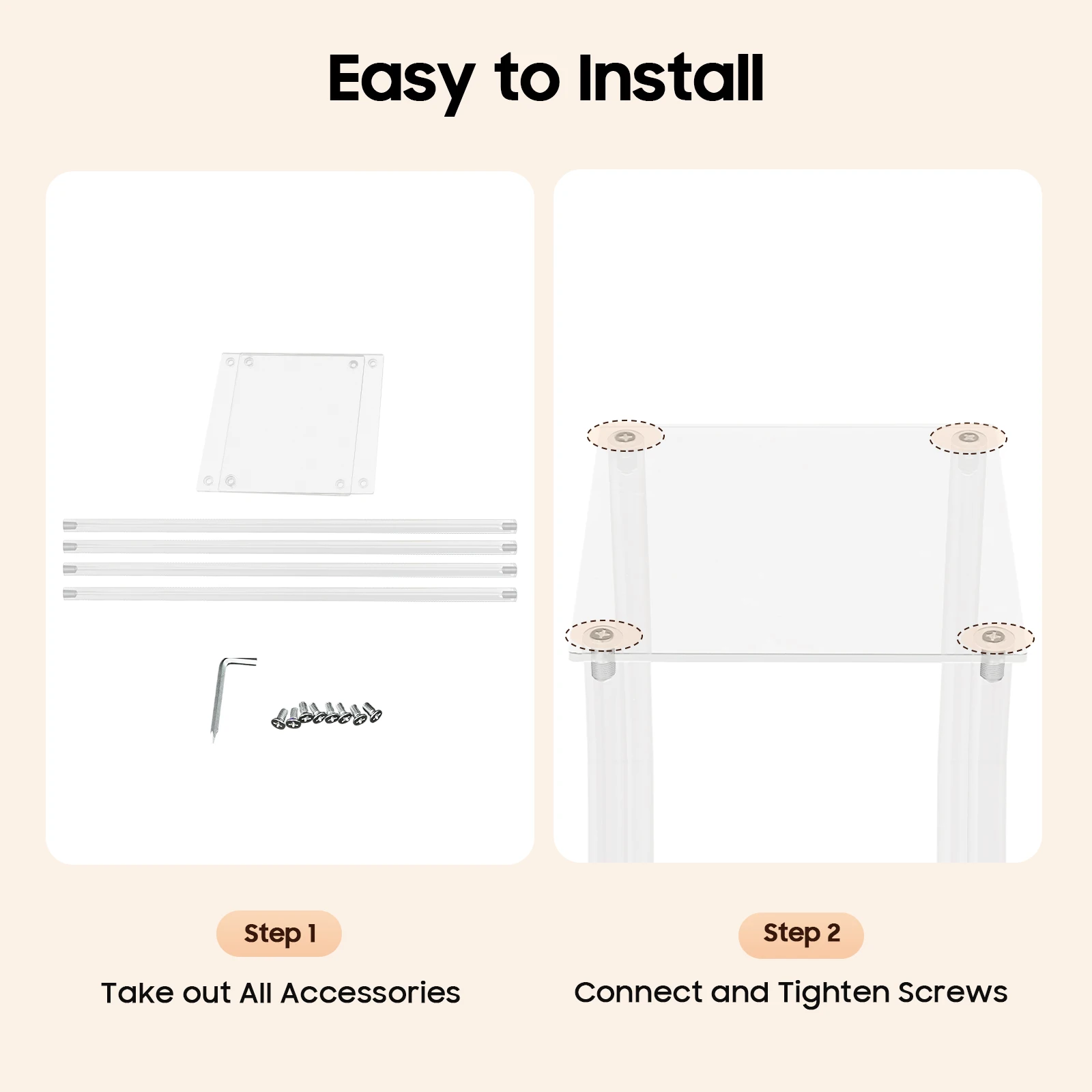 Easy Installation: It's simple to assemble-just insert the poles into two square acrylic panels and secure them with screws, allowing even beginners to set it up quickly and save time.