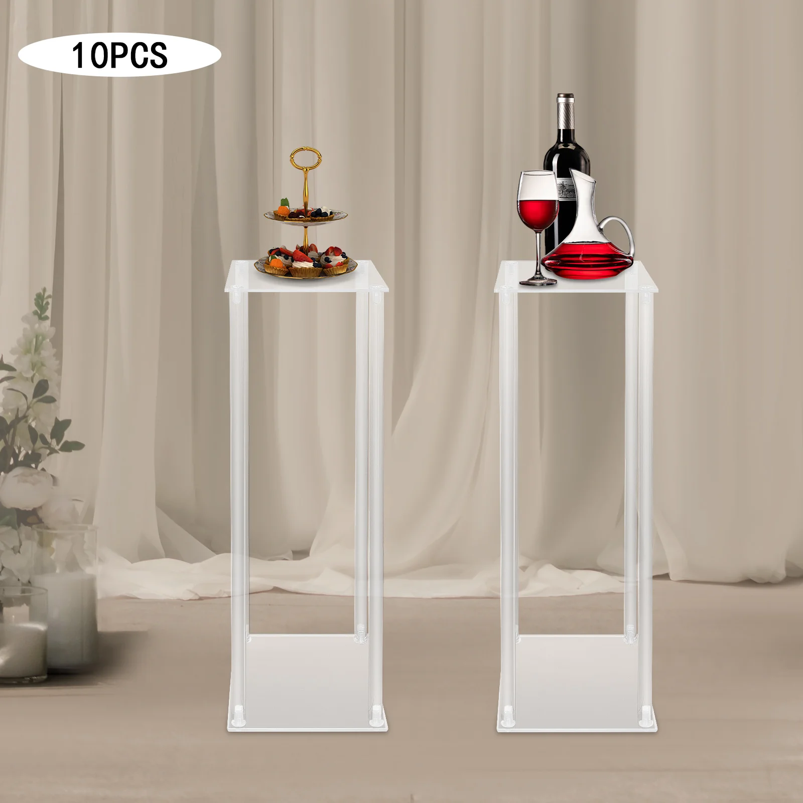 Set of 10: The package includes 10 stands, making it ideal for party decorations. On different occasions, you can adorn them with flowers, string lights, balloons, candle holders, or cakes to effortlessly create a variety of party atmospheres.