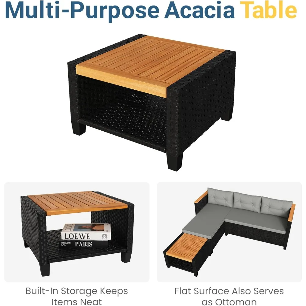 Versatile Storage Table: More than just a table—this piece doubles as a storage ottoman or footrest (supports up to 176 lbs), offering added flexibility for your sectional outdoor seating. Keep your outdoor essentials close while enjoying a relaxing afternoon with this patio furniture with storage