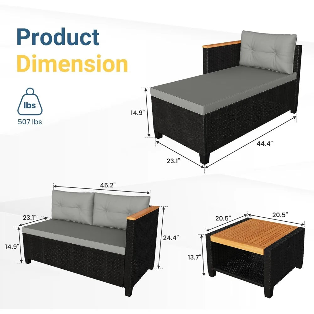 Compact L Shape Design: This L shape outdoor couch includes one lounge chair, one loveseat, and a storage coffee table—ideal for small balconies or cozy patios. Its elegant, neutral tone fits seamlessly into any décor, helping you build your own Wisteria Lane moment with friends and family