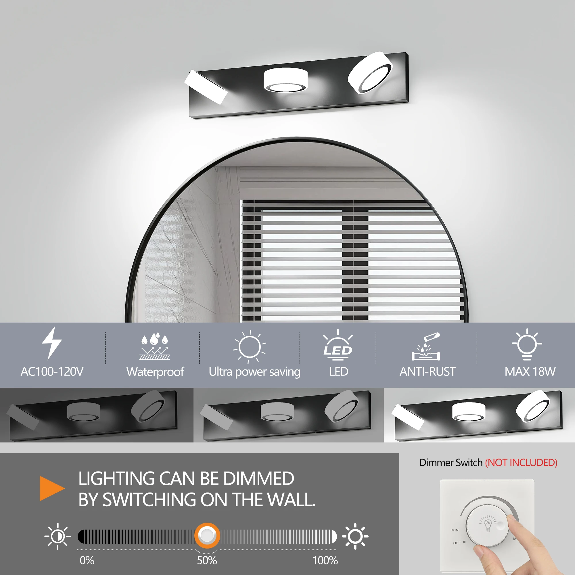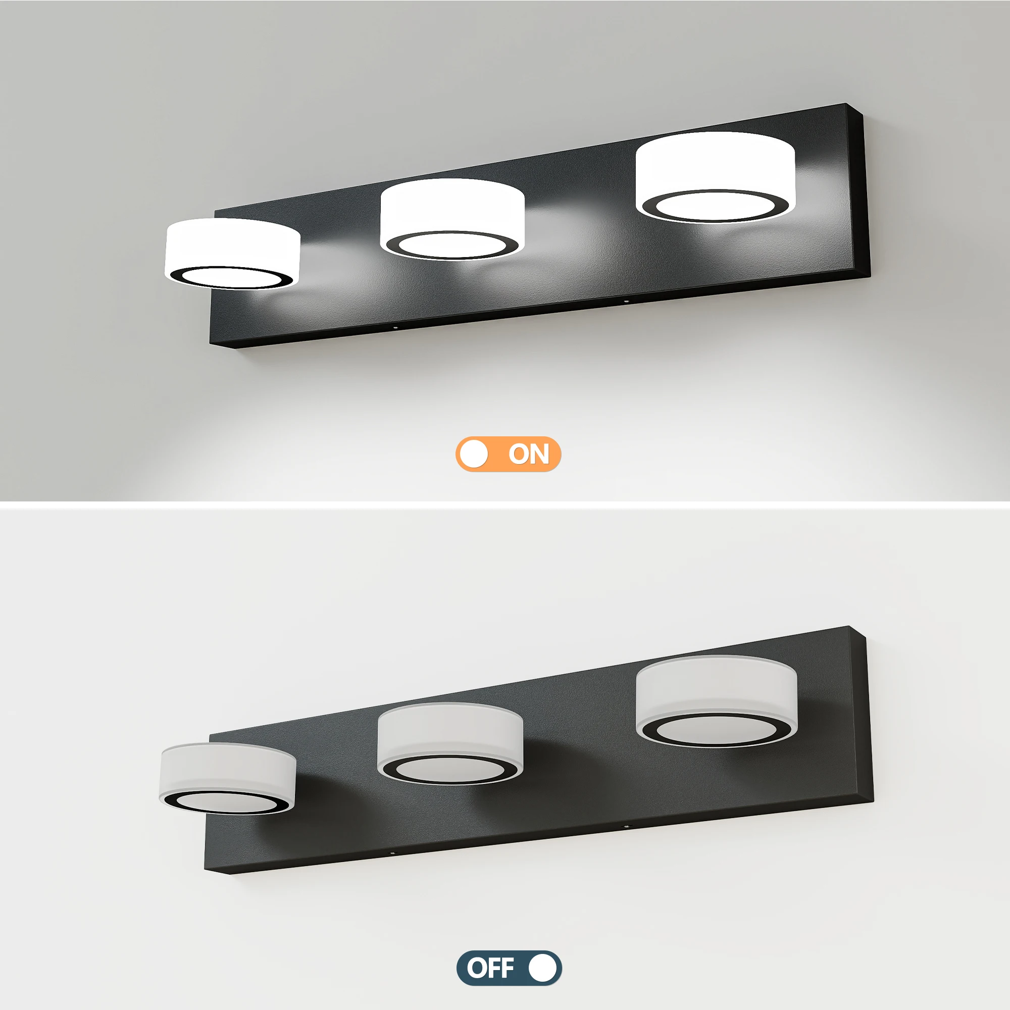 21 inch 3 Lights Black Vanity Light Fixtures LED Dimmable Bathroom Over Mirror