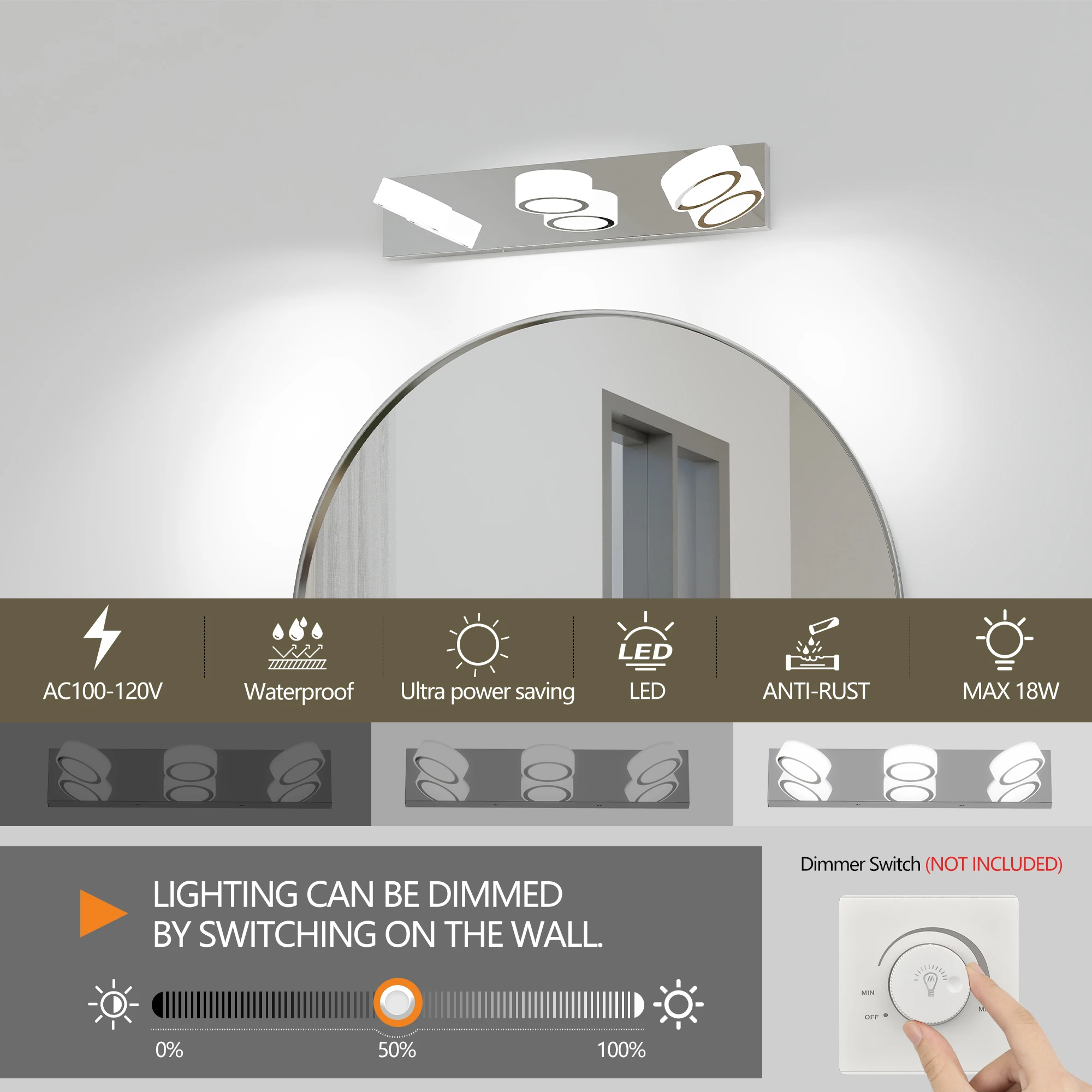 ENERGY SAVING: 18W LED Vanity Lights / White Light. Although only 18W, but he offers brightness more than ordinary 90W bulbs