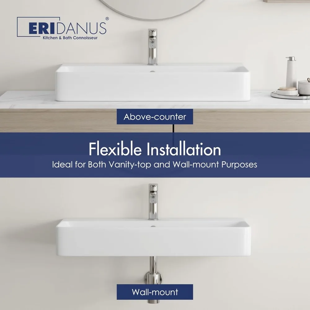 Bathroom Vessel Ceramic Rectangular Sink Above Counter Wall