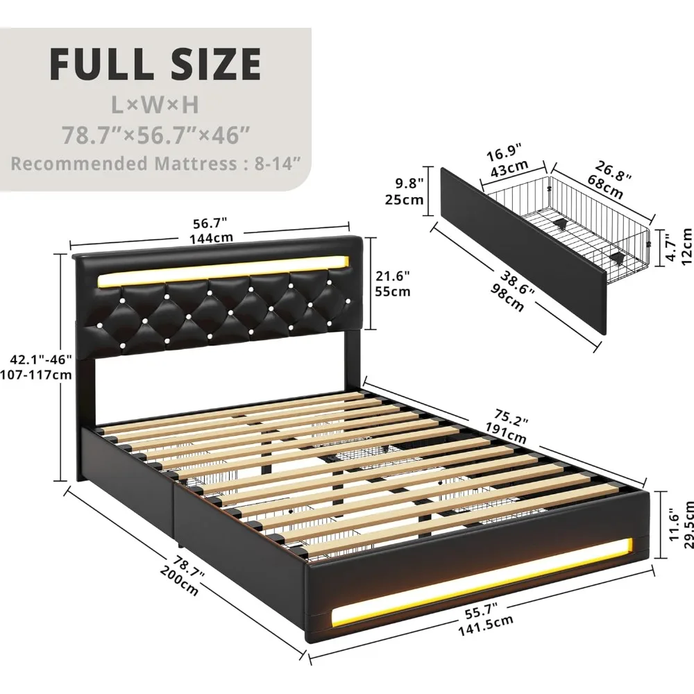 Special Feature: LED Lights and 4 Storage Drawers, PU Leather Platform with Adjustable