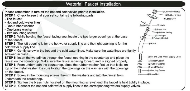 Material: Tempered glass with high temperature resistance, brass made mixer tap, stainless steel pop-up drain.