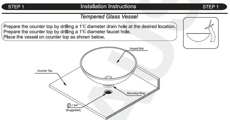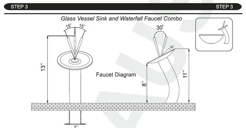 Set: Glass Sink, Brass Faucet, Chrome Pop up Drain