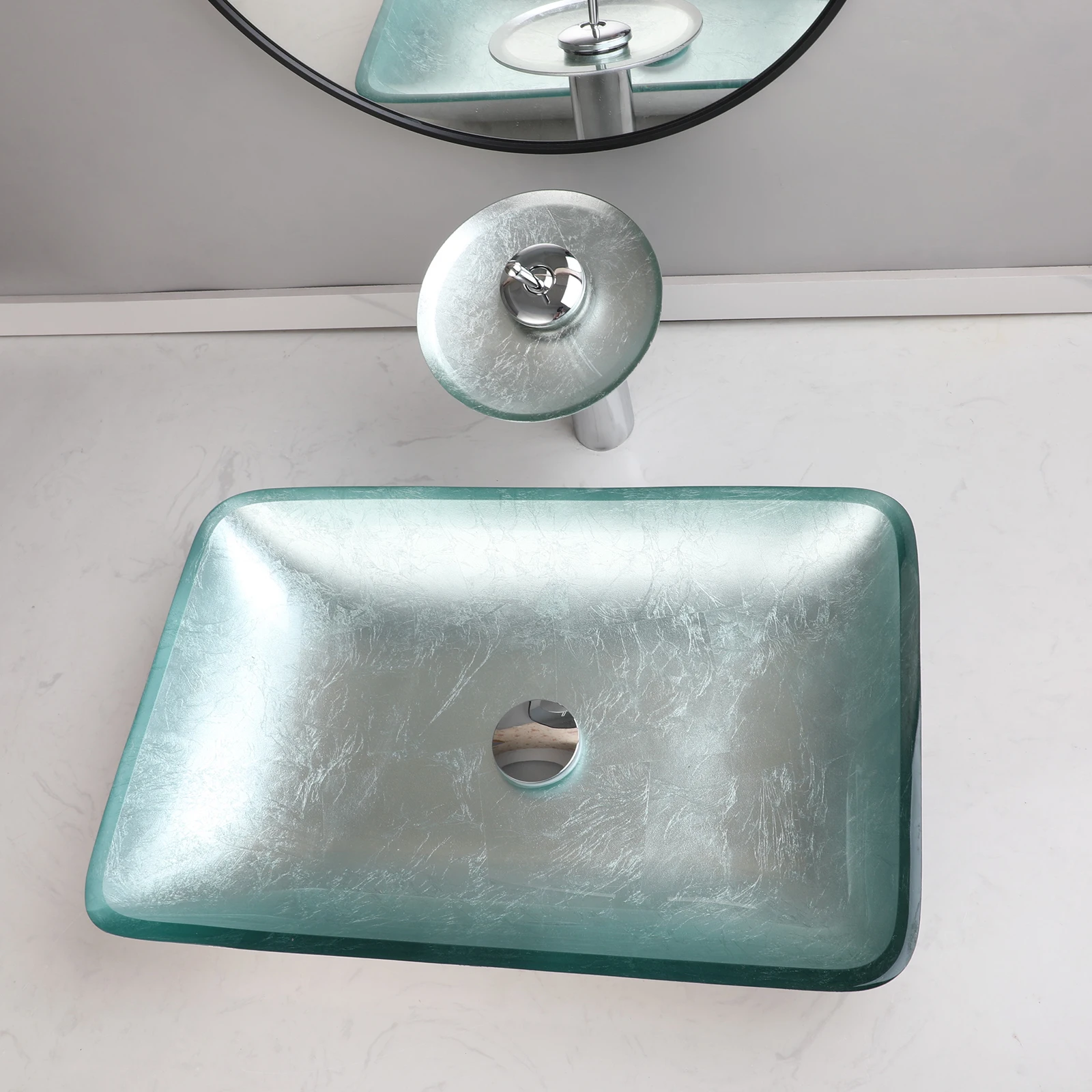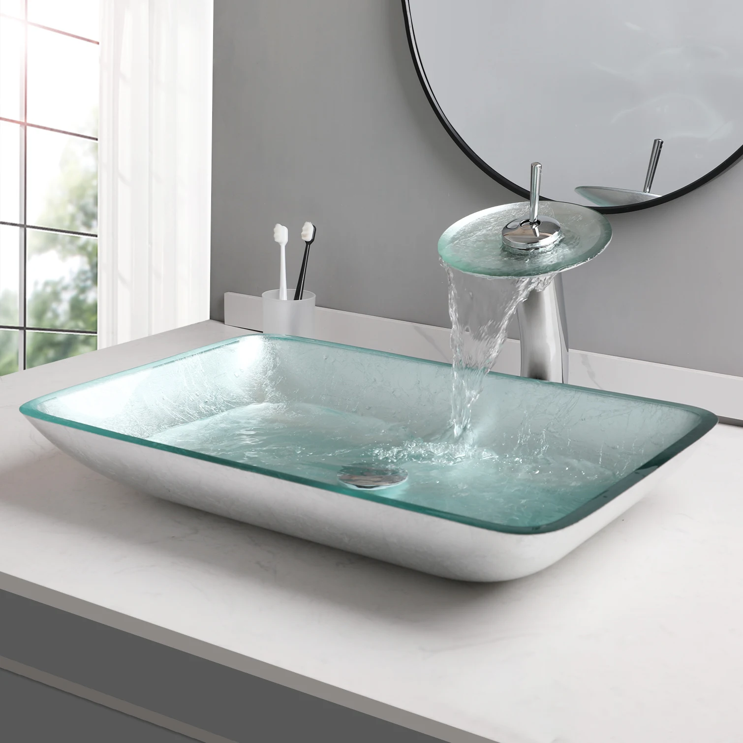 Type: Countertop Sinks, Bathroom Glass Vessel Sink Bowl Faucet Set