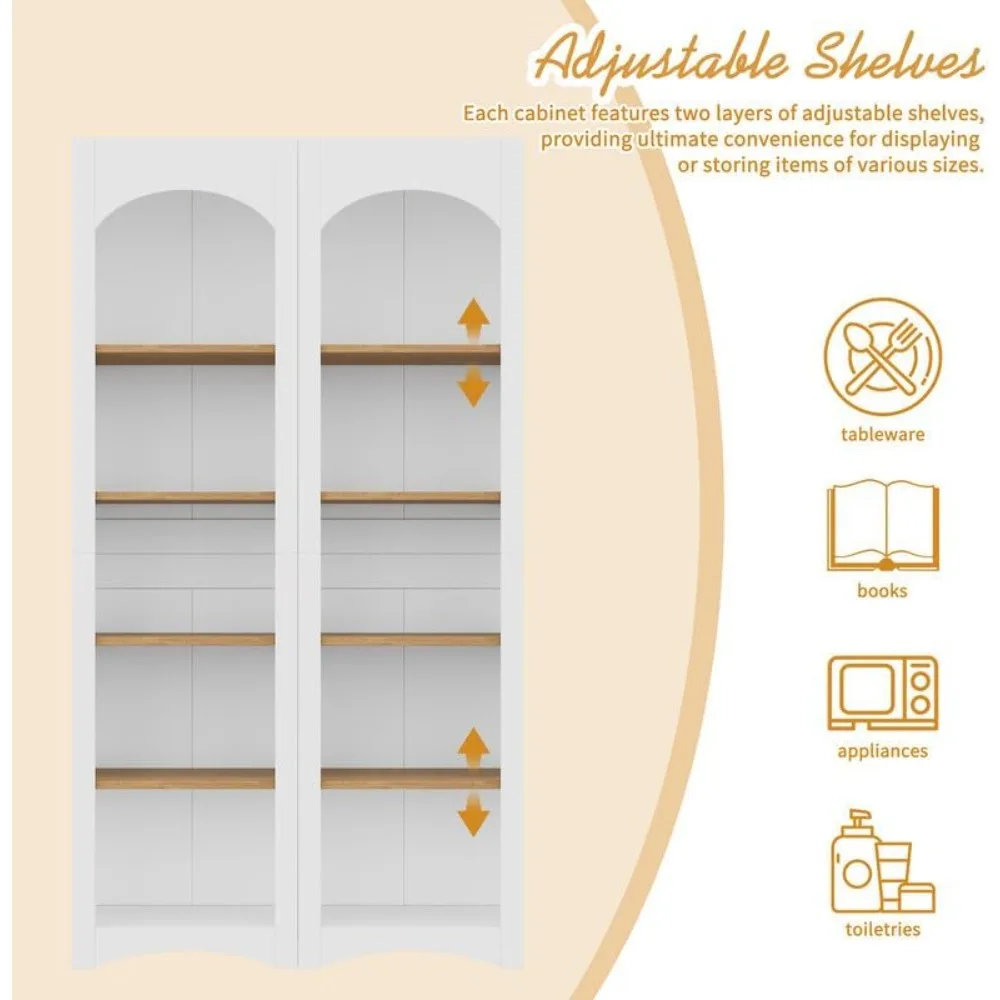 - Adjustable Shelves: Each cabinet features two layers of adjustable shelves, providing ultimate convenience for displaying or storing items of various sizes. The open-space design allows you to keep your belongings easily accessible. You can use to accommodate tableware, books, appliances, toiletries, or anything you like.