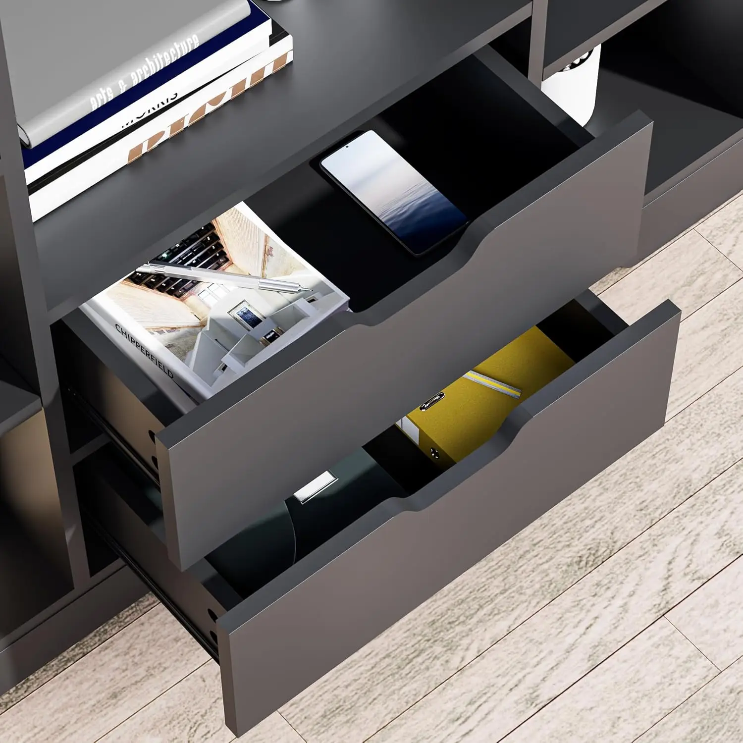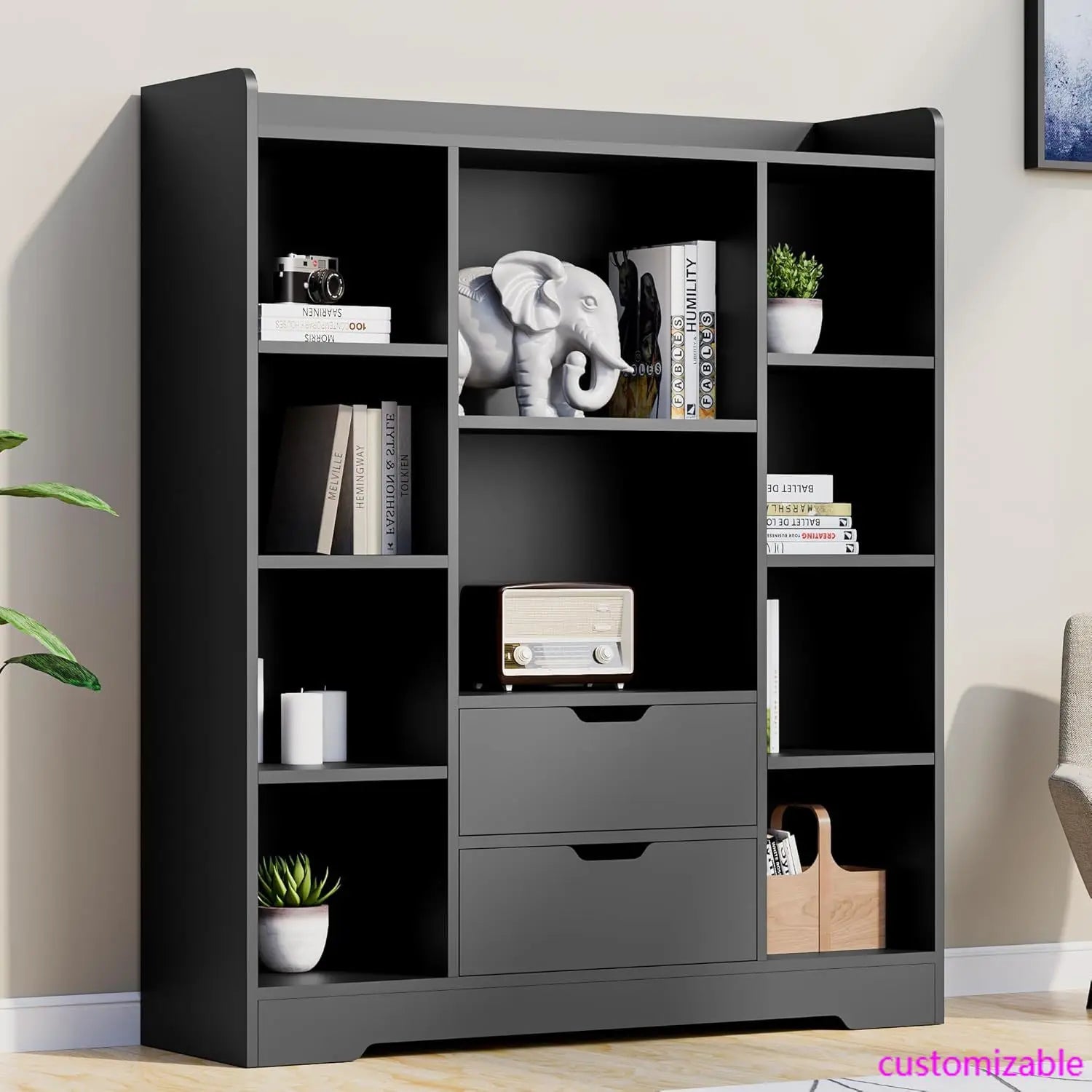 Kids Bookshelf with Storage, Toy Storage Organizer with 2 Drawers and 10 Cubes 4-Tier Bookcase for Bedroom, Playroom, Hallway, Living Room(Black)