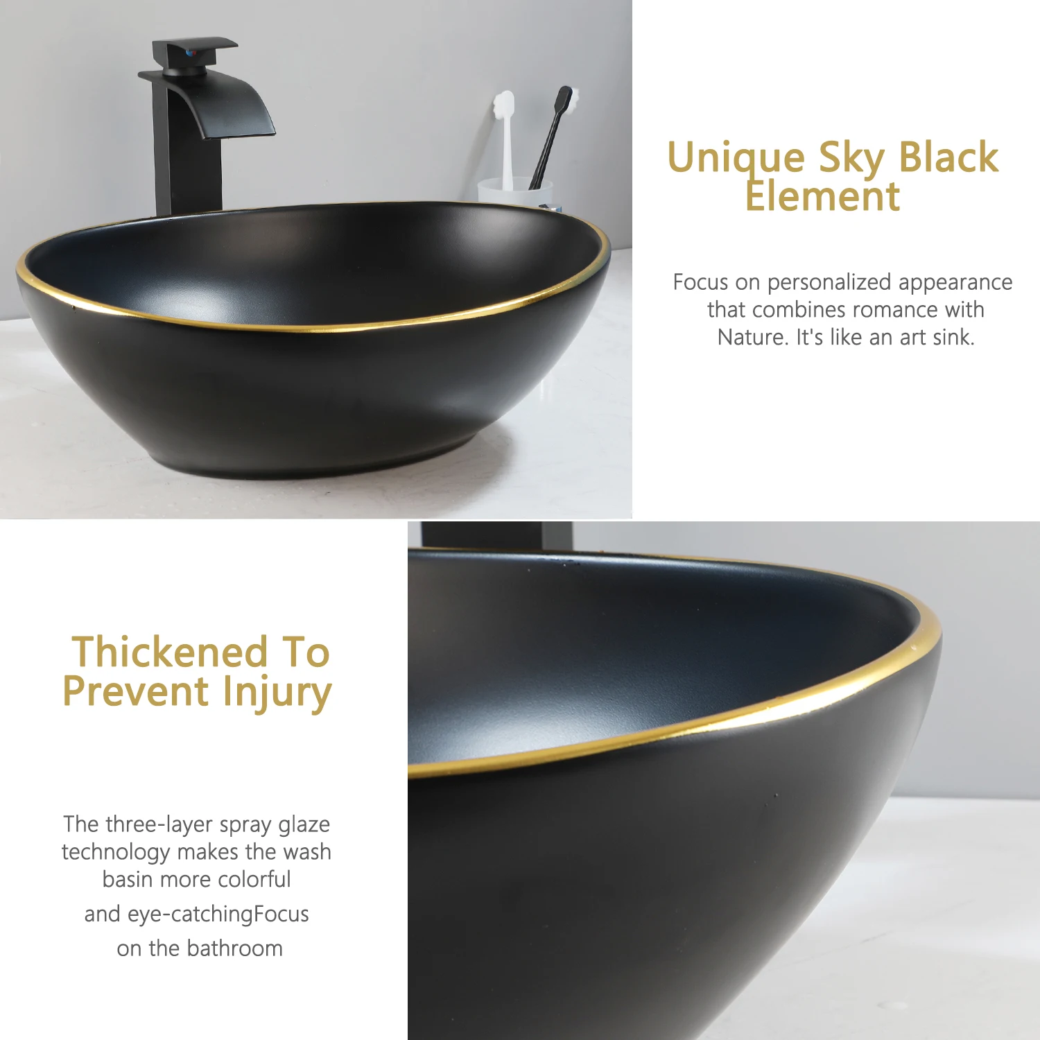 ★【Smooth Durable & More Bright】The edge of oval vessel sink is polished to make it smooth and not easy to touch water, which can effectively prevent scratches and other phenomena. Our ceramic vessel sinks are made of environmentally friendly glaze, which makes it more environmentally and healthy. Three-layer glaze makes the color of the sink bowl brighter and can withstand daily wear and tear and maintain its luster year after year.