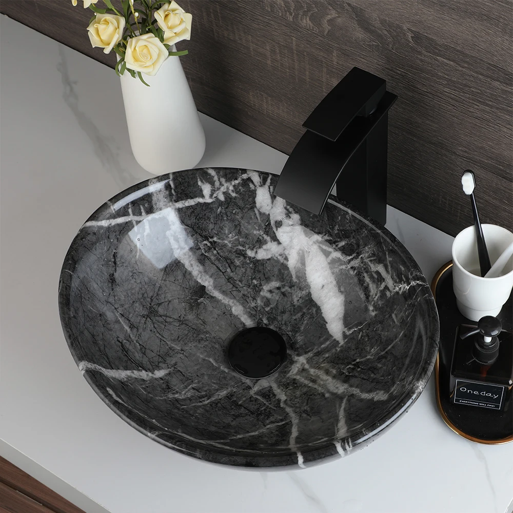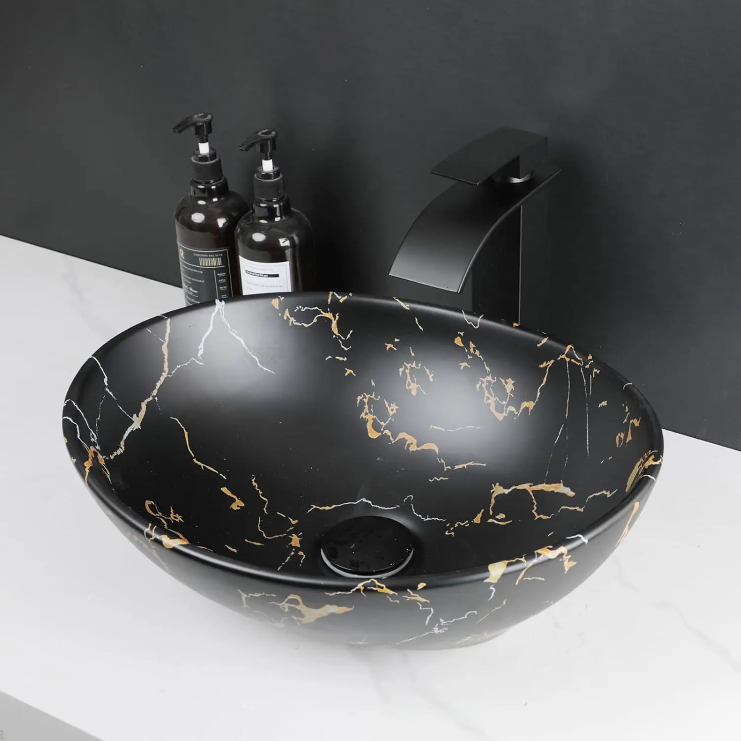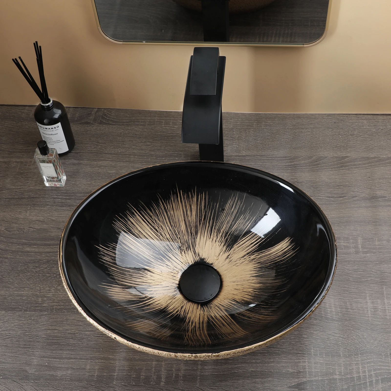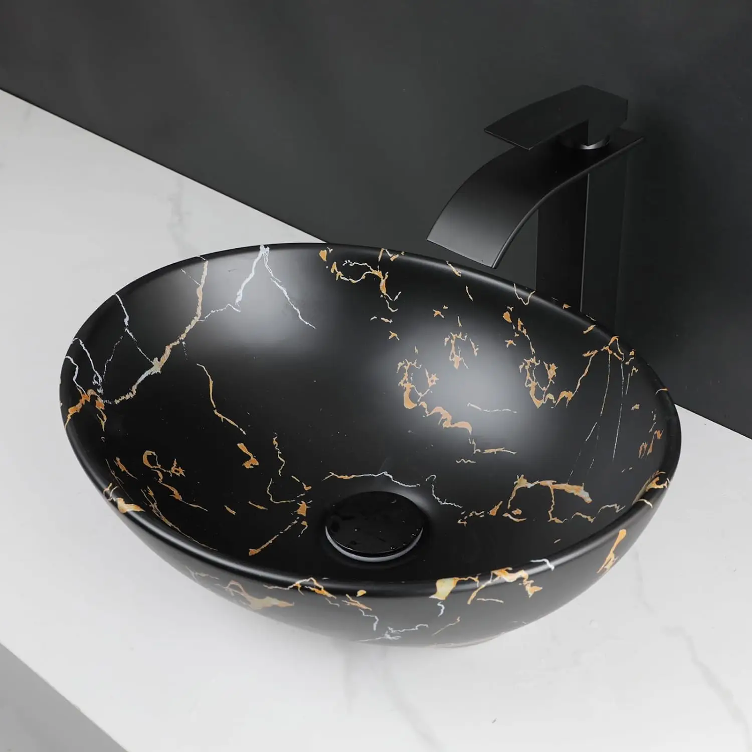 ★【Unique Marbling Design & European Modern Sleek Style】Our oval bathroom sink pays more attention to the personalized appearance design, which combines romance and nature. It seems to be a work of art, which inadvertently gives people a sense of shine and becomes the eye-catching focus in the bathroom.Add high-style to any bathroom or bar vanity with this vessel sink,let the bathroom life exude its unique charm.
