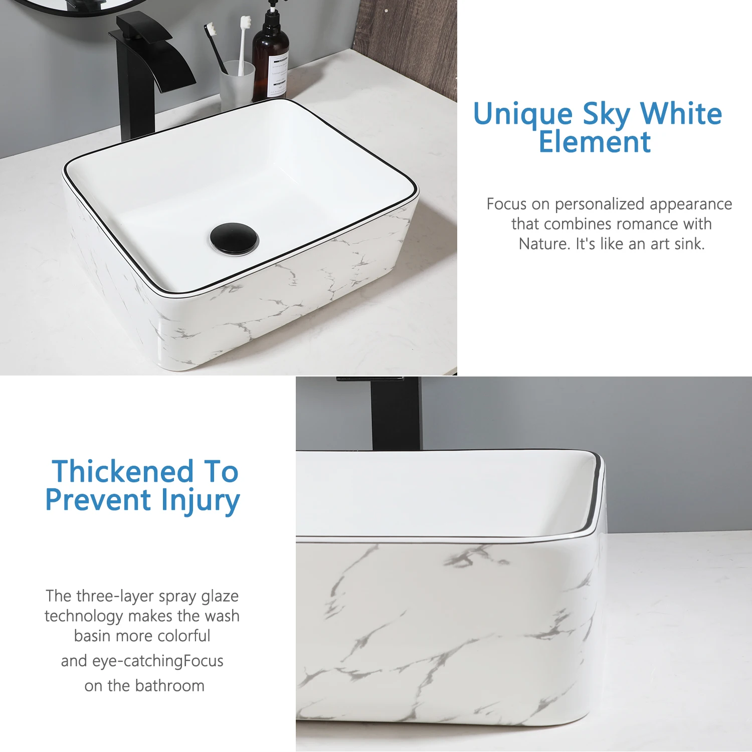 - Superior Quality: Crafted from high-quality ceramic material, the KEMAIDI White Ceramic Bathroom Sink with Marbling offers exceptional durability and long-lasting performance. Its superior craftsmanship ensures a reliable and stylish addition to any bathroom decor.