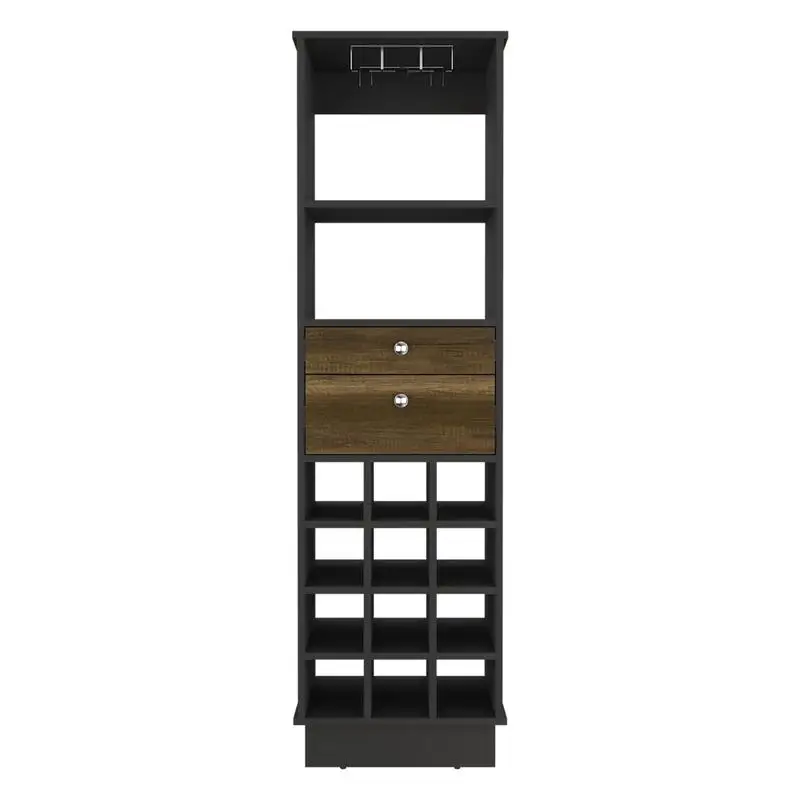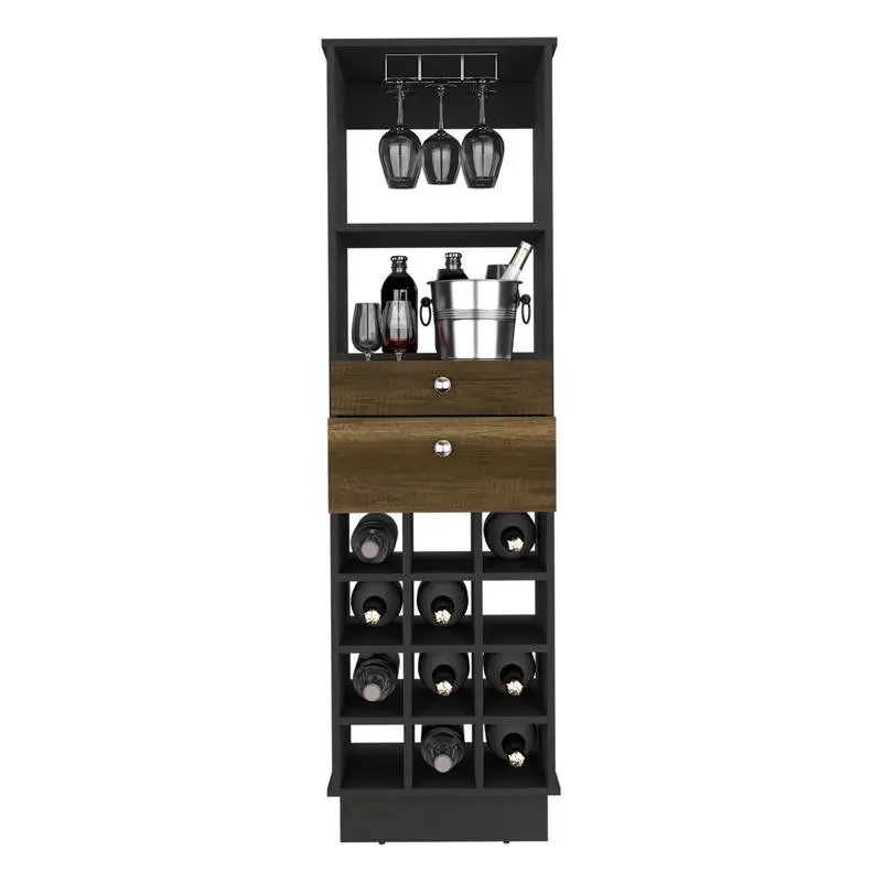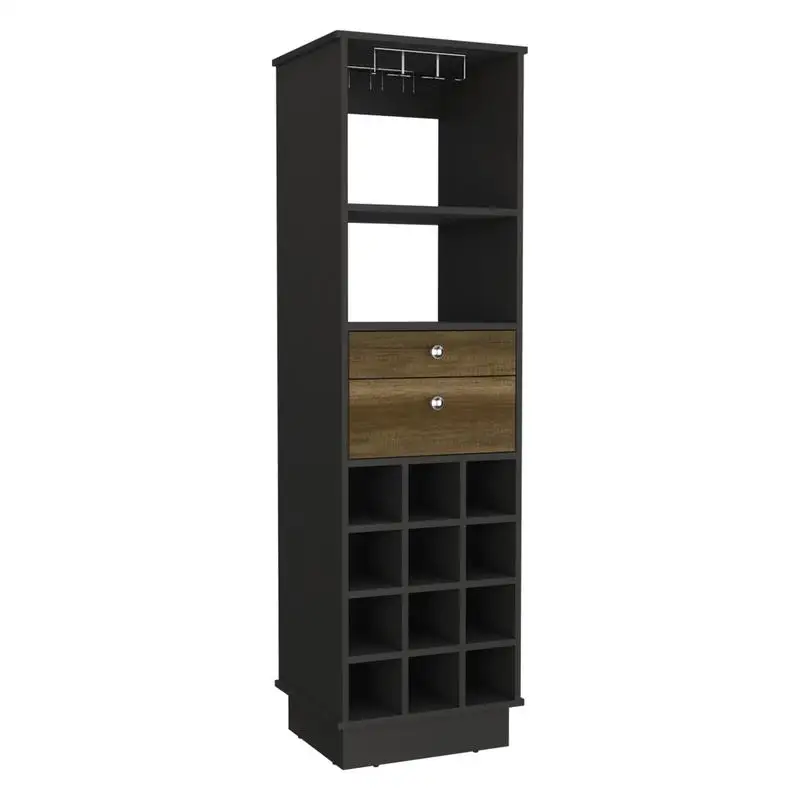 Product Name: Classic Bar Cabinet, Two Drawers, Twelve Built-in Wine Rack-Black / Walnut