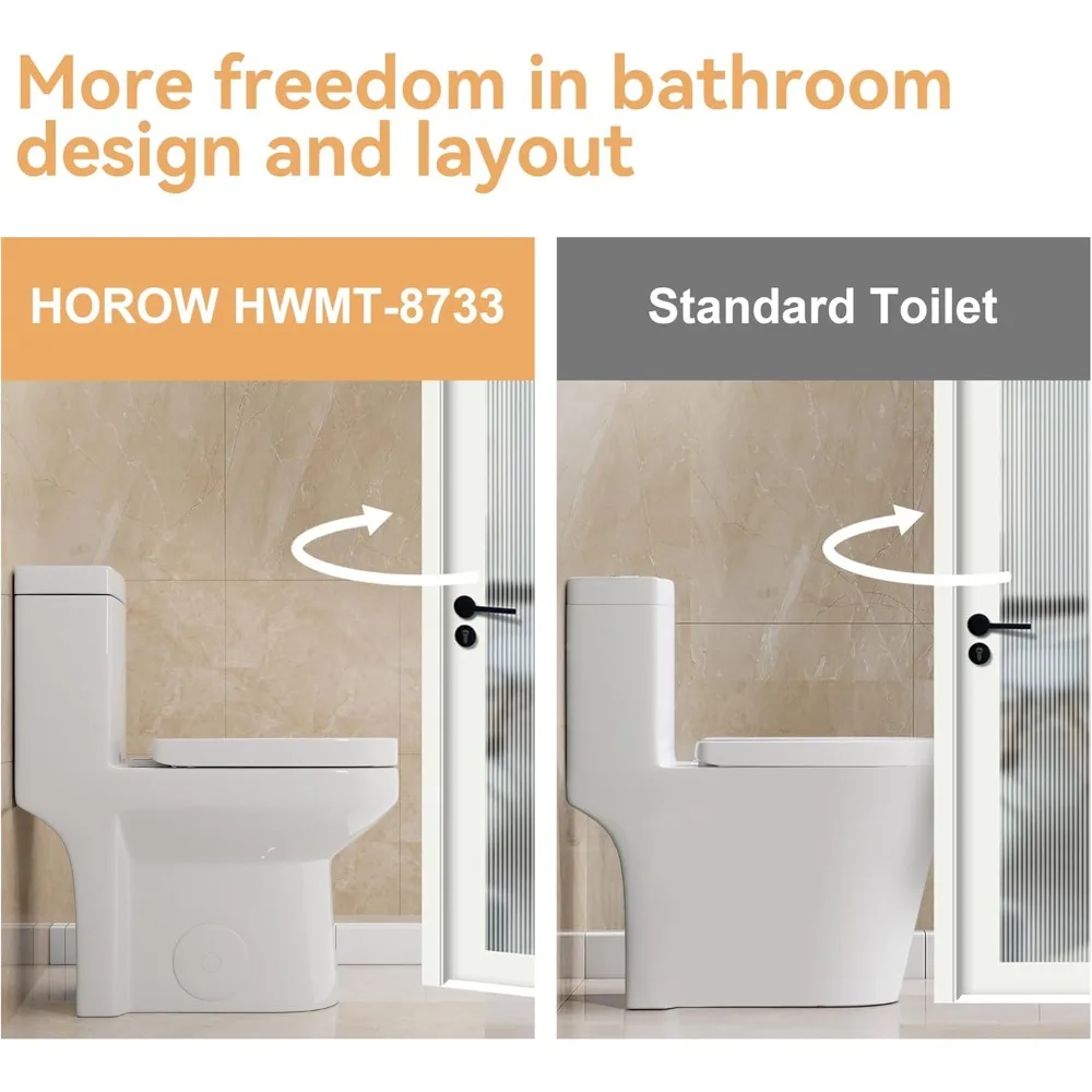 This product features a contemporary and compact design, ideal for small spaces. Measuring approximately 25 inches in depth, 13.4 inches in width, and 28.4 inches in height, it is perfect for apartments, small bathrooms, and ensuite spaces. Despite its compact size, it offers a comfortable user experience with a standard round bowl and a 16.5-inch high seat, making it easier to rise from the toilet. The toilet boasts a powerful siphon flush system with two options: a full flush that uses 1.6 gallons of water and a light flush that uses 1.1 gallons, ensuring a clean bowl while conserving water. The bowl is fully glazed, making it easy to maintain cleanliness with minimal need for scrubbing. Additionally, it comes with a soft-closing polypropylene seat that closes quietly, reducing noise during nighttime use.