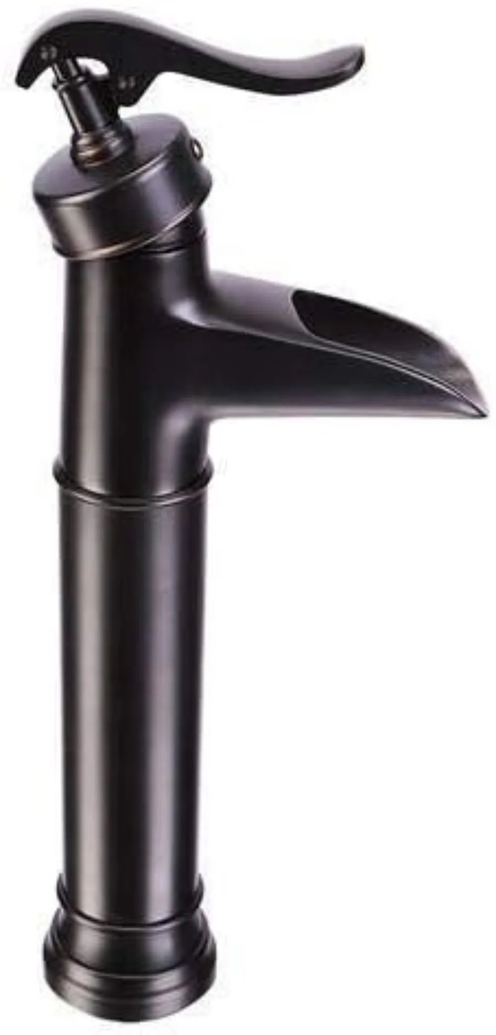 - Waterfall Faucet height: 13.5 inches Spout reach: 5 inches Spout height: 9 inches