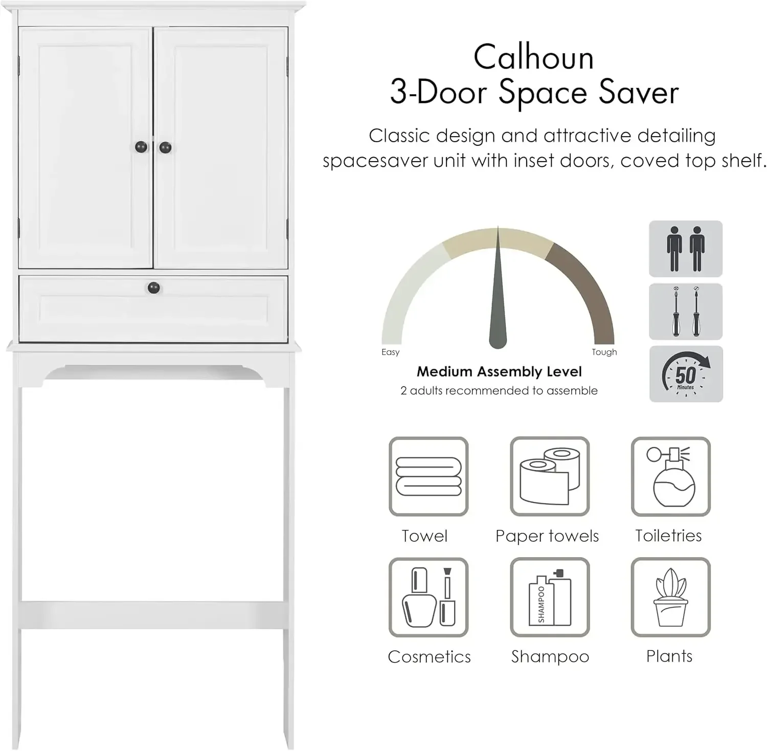 - Quality Craftsmanship: Built meticulously for long-lasting endurance, the bathroom storage cabinet over toilet is constructed from durable materials that stand the test of time. Plus, our above toilet cabinet is equipped with a tip-over restraint device, ensuring it stays securely in place, providing peace of mind for you and your loved ones.