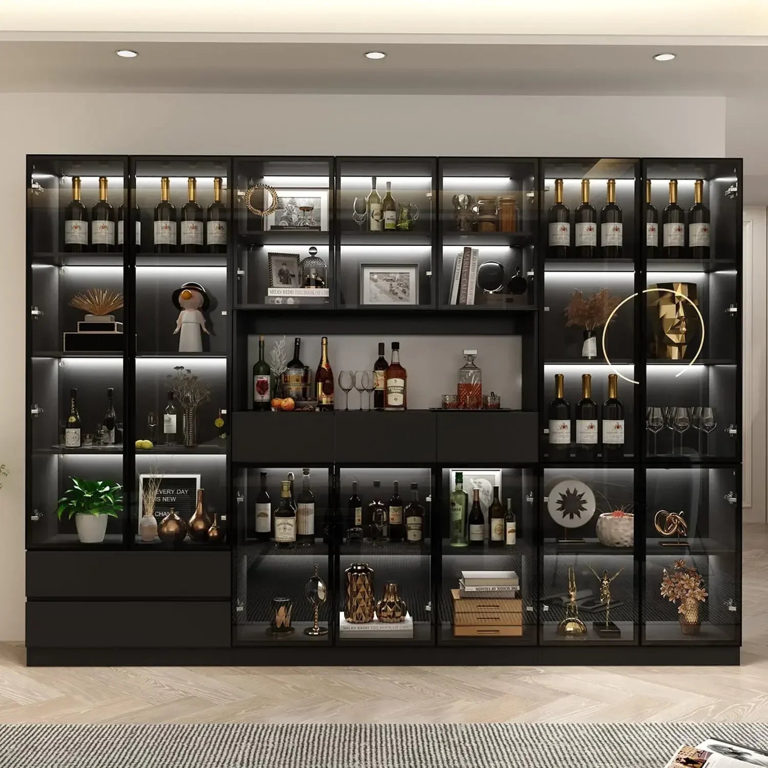 - Light Strip Design - All doors of the diaplay cabinet are made of clear glass, offers convenience for you to locate items. Light strip of 3 colors can create stunning atmosphere for your room, easily to turn on with a switch. Without too much elaborate ornamentation, the storage cabinet will bring tidy and elegance to your home