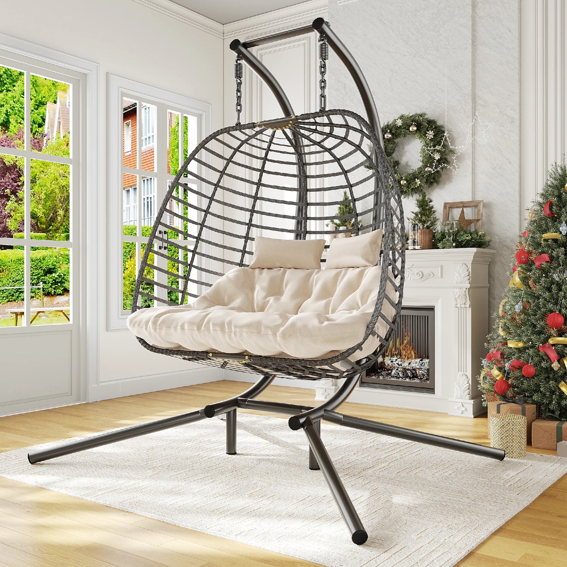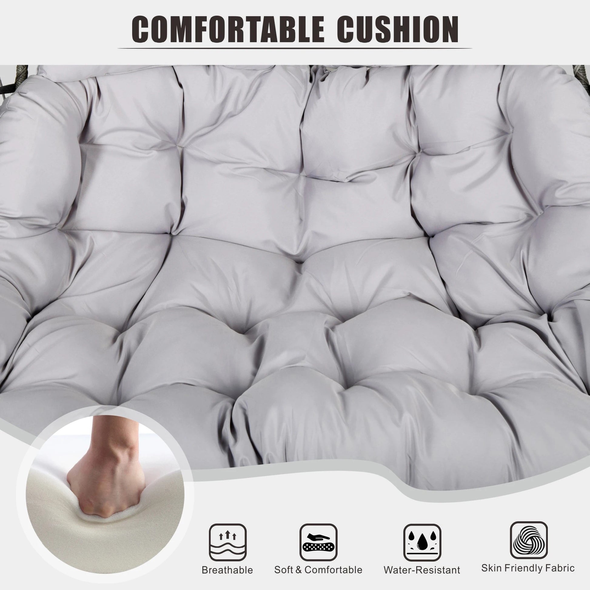 【Comfortable】Our Double Hanging Egg Chair with Stand redefines comfort and style, offering an oversized, ergonomically designed seat for unparalleled relaxation. Unwind for extended periods with double thick cushion and headrest.