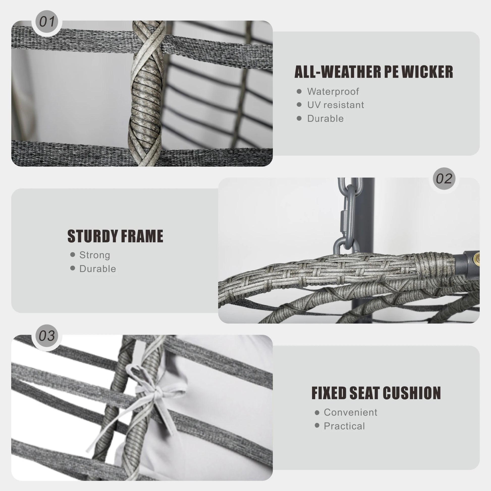 【Suitable for You】Double seats, more suitable for couples, couples and families. This Indoor Outdoor Wicker Egg Chair seamlessly integrates into your living room, bedroom, porch, or garden, complementing diverse decor styles.