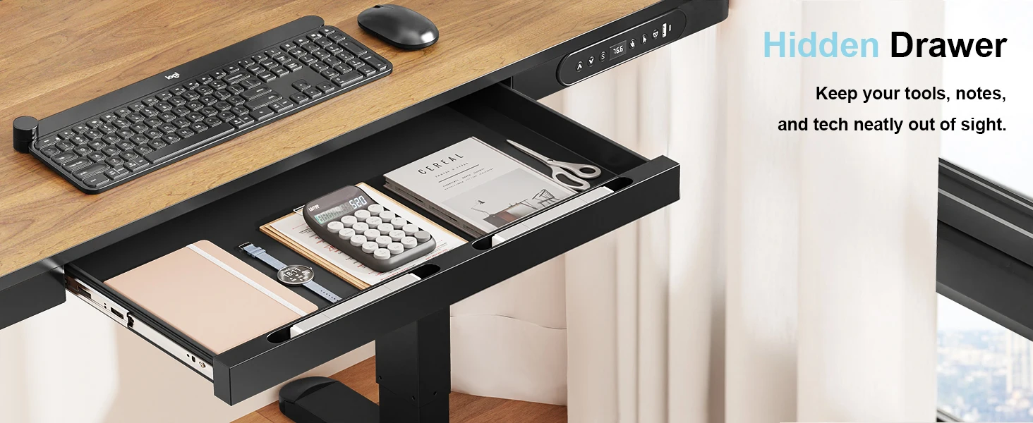 * SPACIOUS METAL DRAWER – Organize essentials with a hidden under-desk drawer ideal for notebooks, accessories, and cables. The sturdy metal design blends seamlessly with the desk while adding functional storage to your office setup