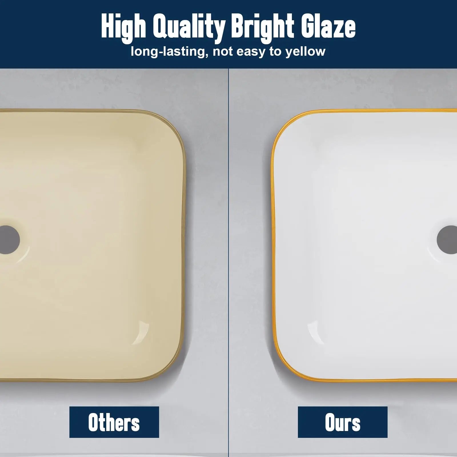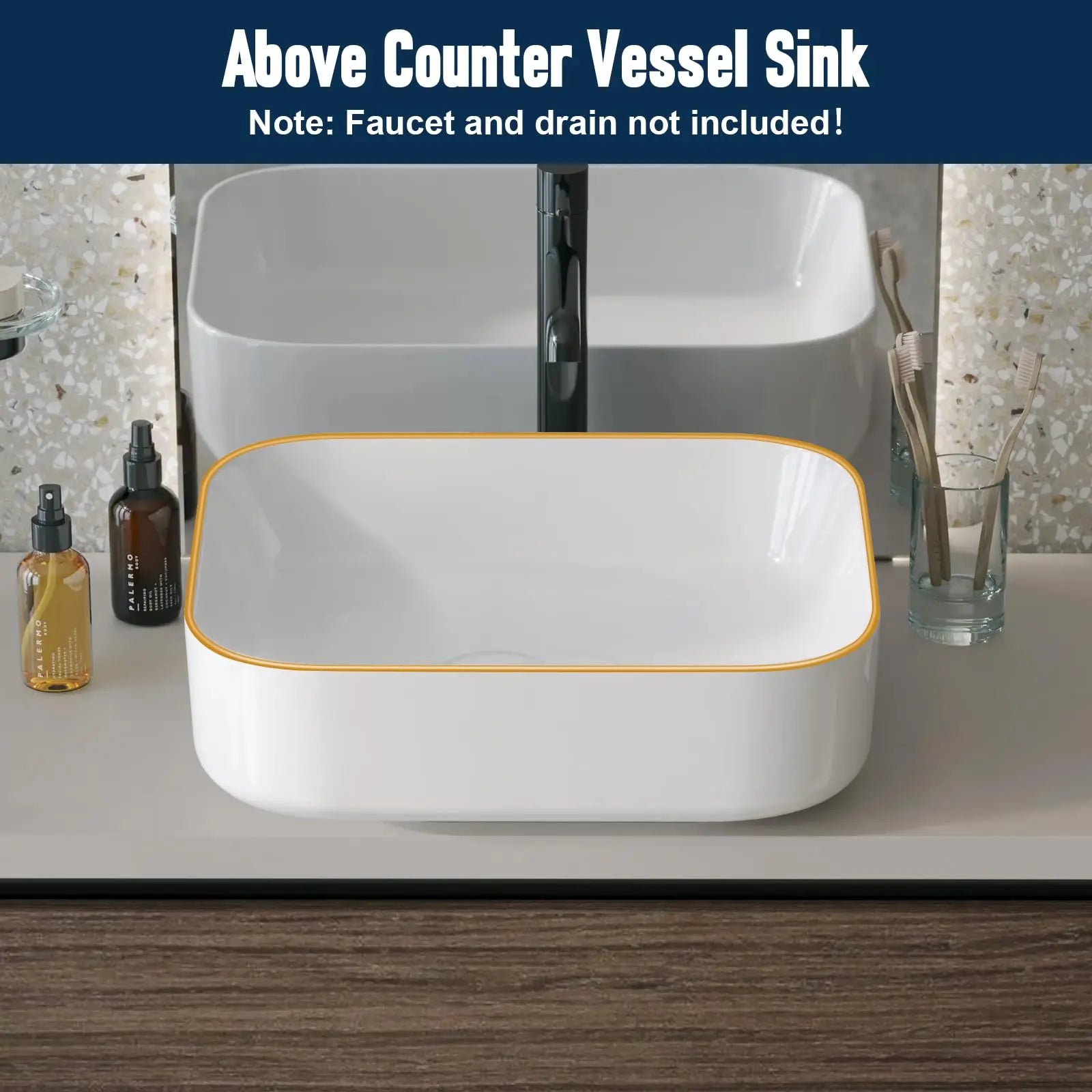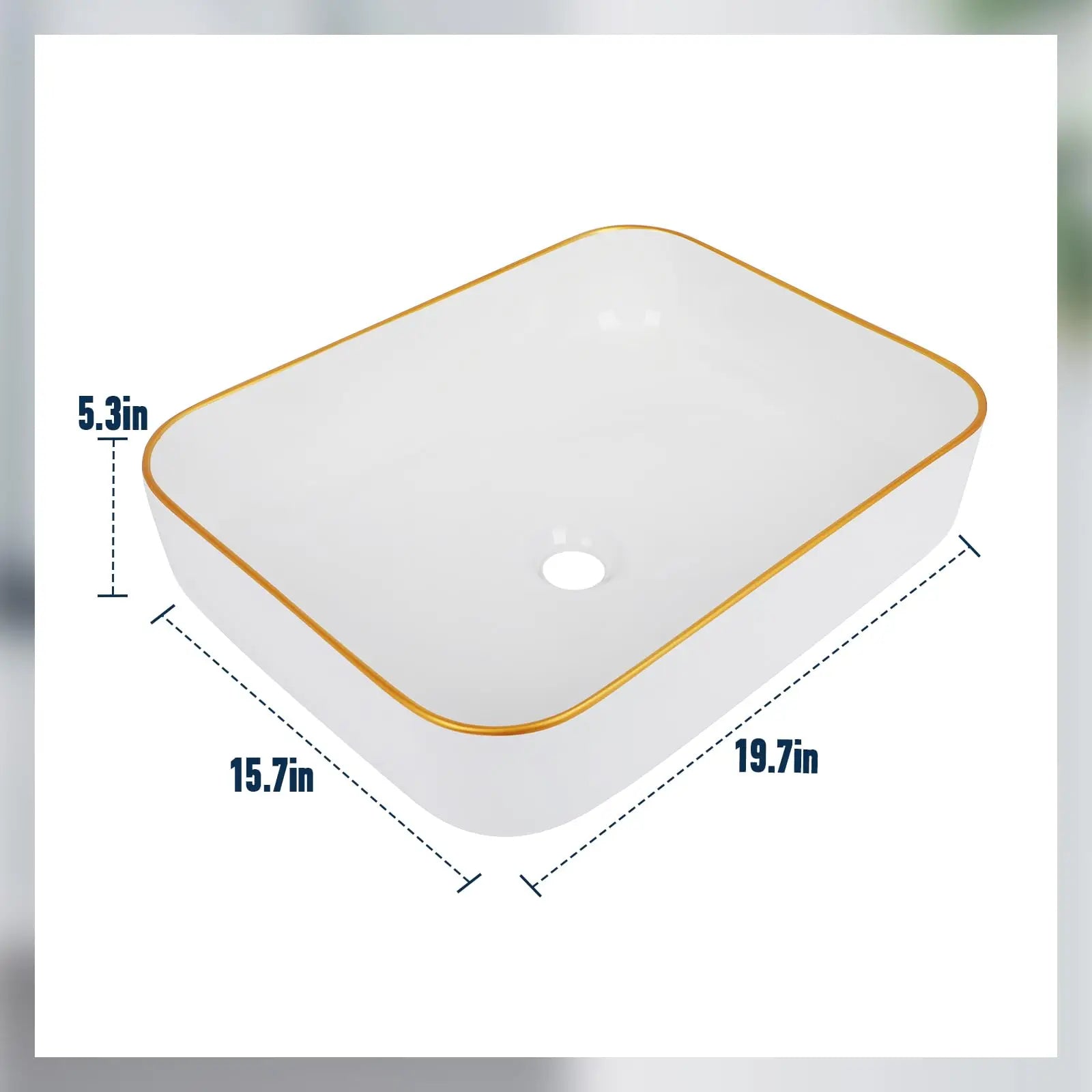 Elegant Modern Ceramic Style Gold Rim Rectangular Vessel Sink