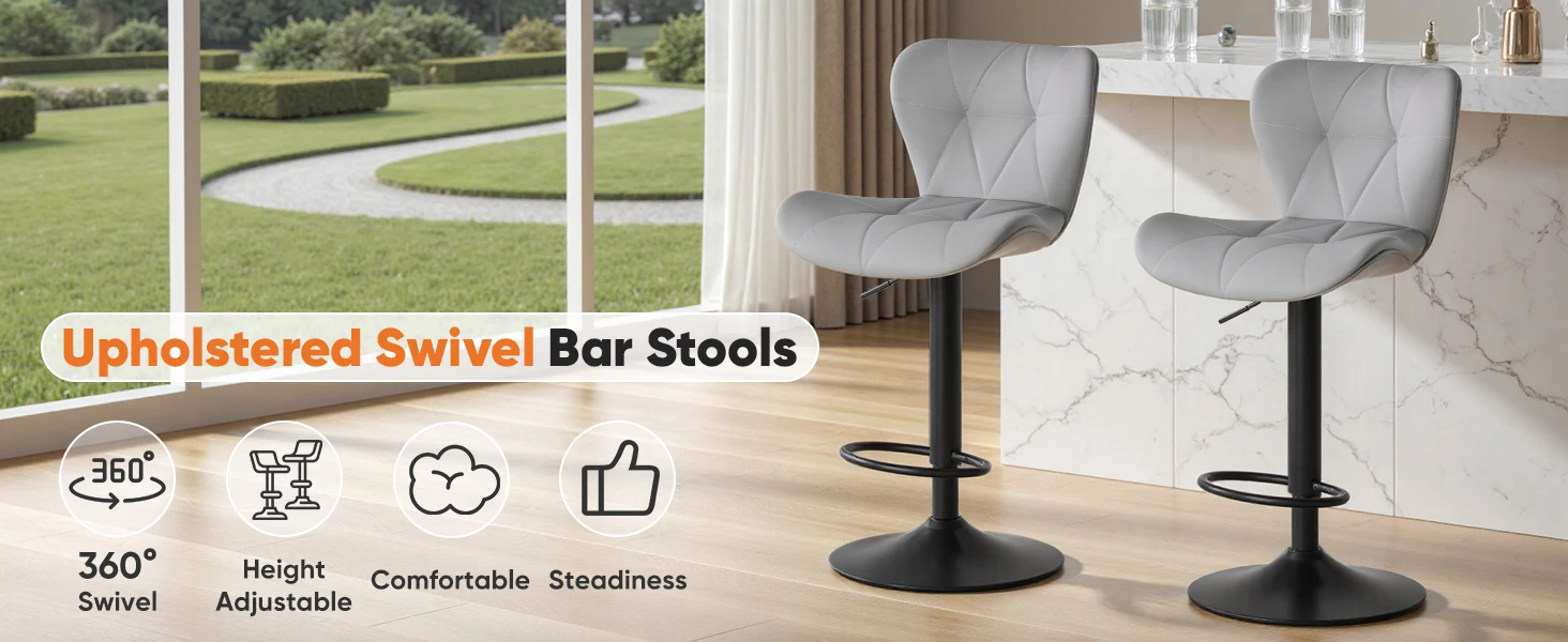 【Adjustable Height & 360˚Swivel】Elevate your space with our adjustable and rotating bar stools. Whether it's a casual dinner or a social gathering, these bar stools offer a seat height range of 24.8" to 33.46" and a 360° swivel, ensuring everyone is comfortable. With the ability to adjust to counter heights of 36 to 45 inches, these stools are versatile for any setting. Plus, their smooth and quiet swivel motion adds to the seamless experience