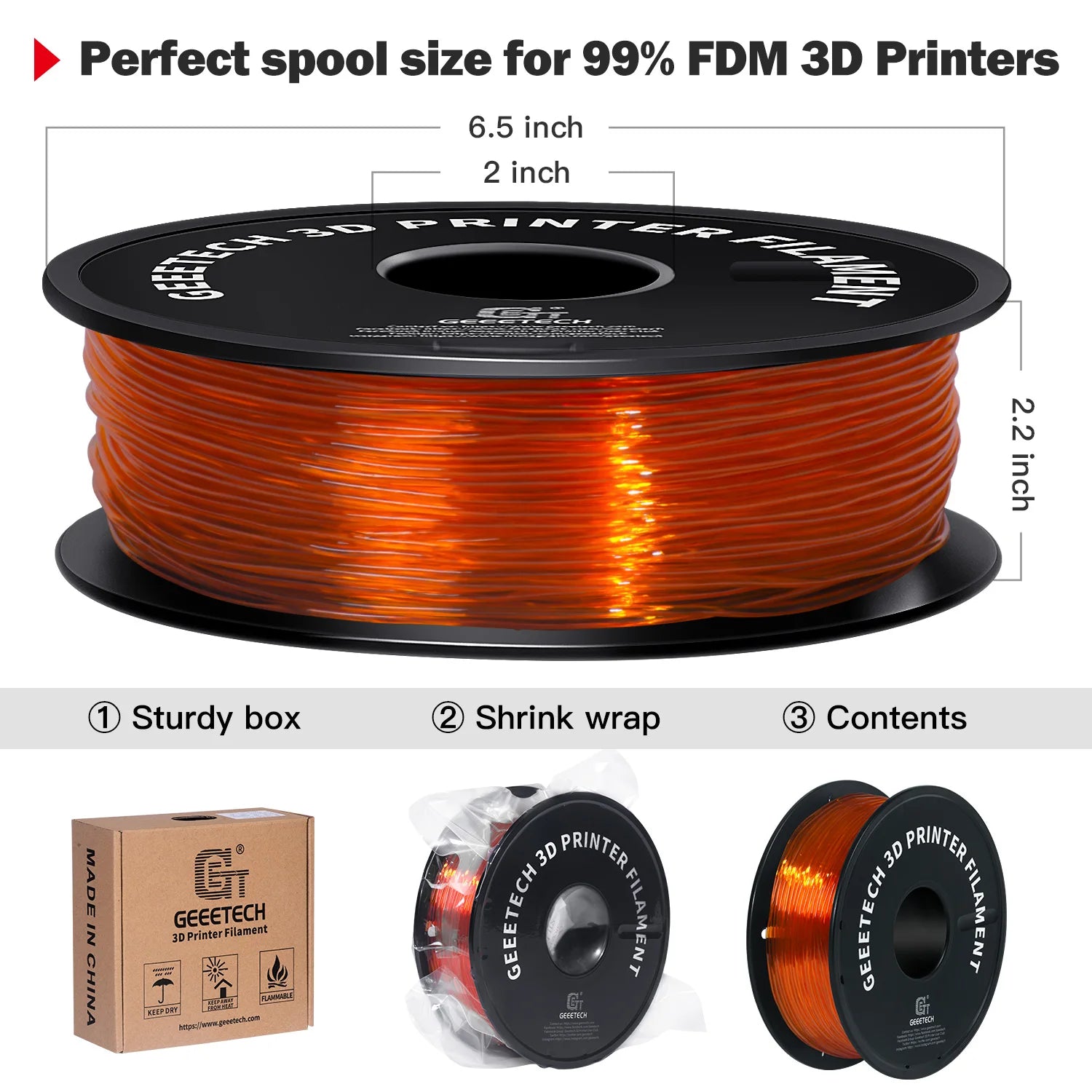 【2】3D printer filament with 1.75mm diameter + / - 0.05mm, Compatible with most FDM 3d printers and 3D Pens