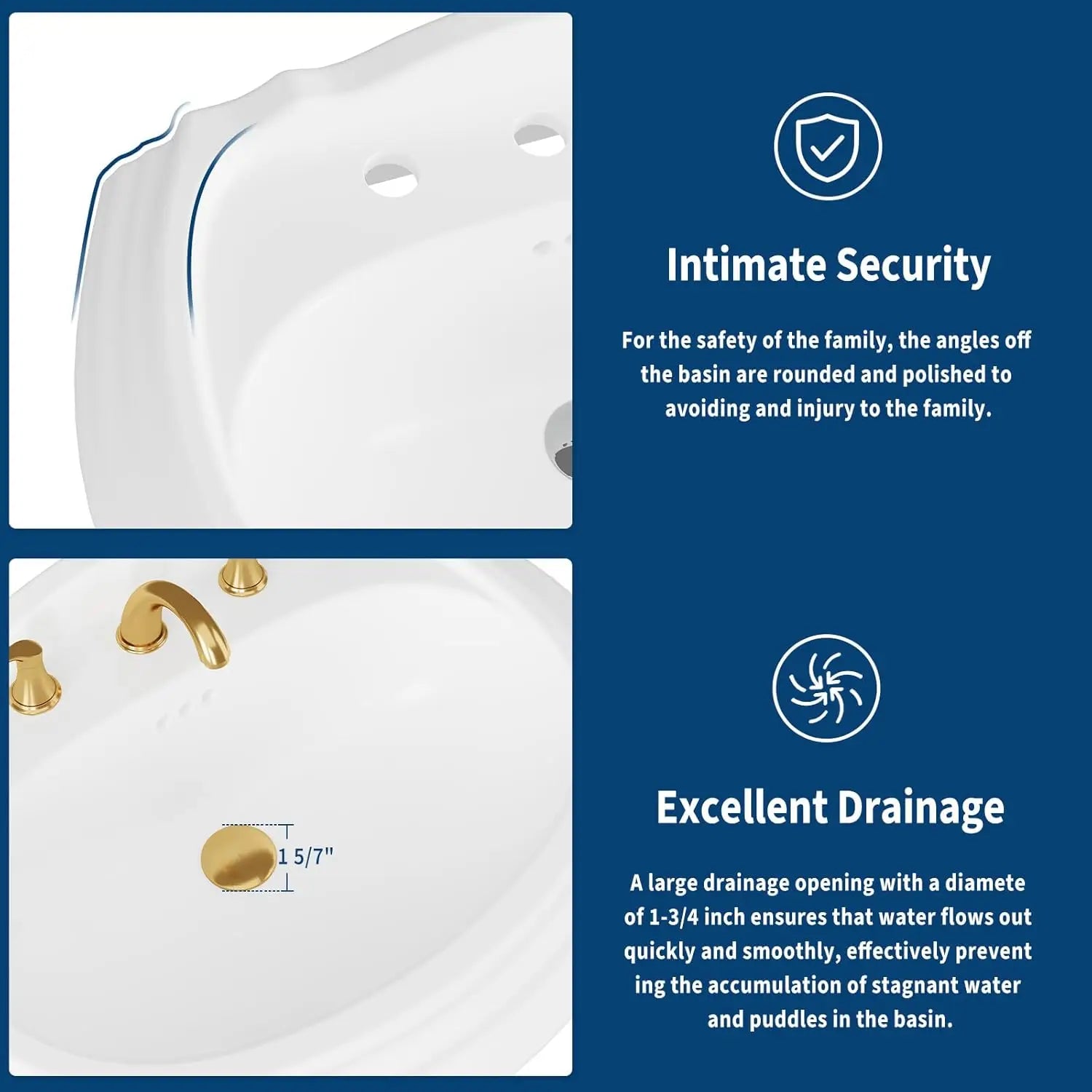 Upgrade your bathroom with this elegant freestanding ceramic pedestal sink, designed to bring both timeless style and practical function to your space. Made from premium vitreous china, the pedestal sink features a glossy white finish that resists scratches and stains, making it easy to keep clean and looking new. Its classic silhouette and compact footprint suit a variety of bathroom decors, from traditional to contemporary.