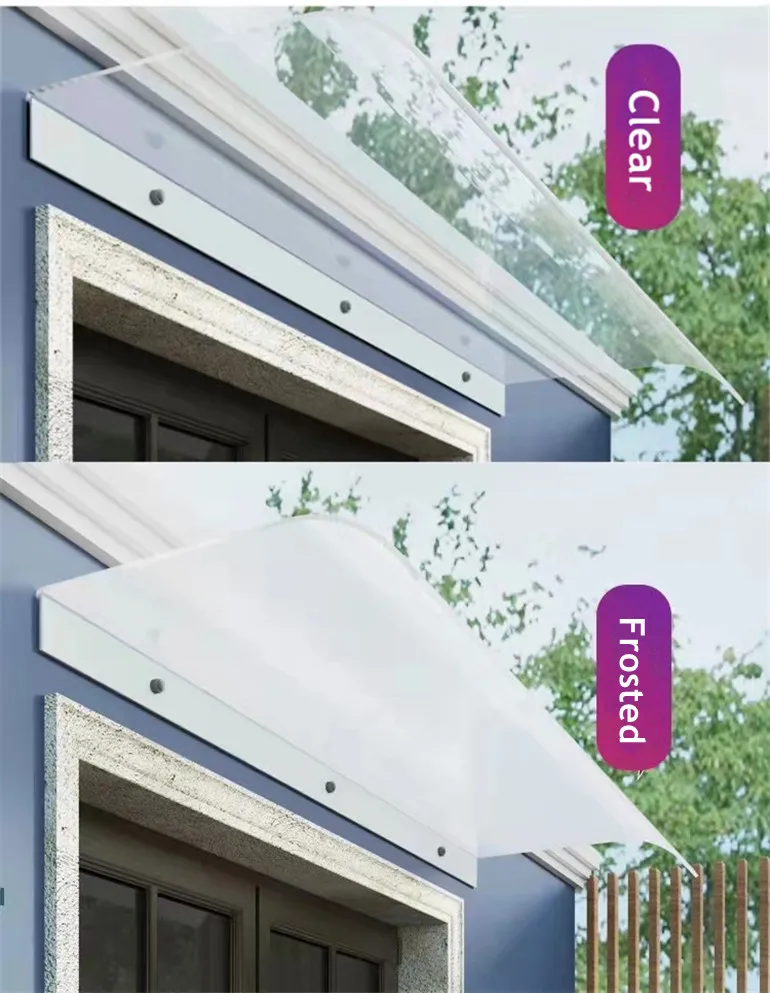 Frosted/Clear Outdoor Awning Canopy - UV Rain Snow Protection for Front Door/Porch/Patio/Roof, PC Thicken Curved Rain Shelter