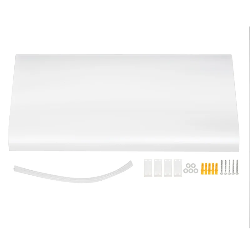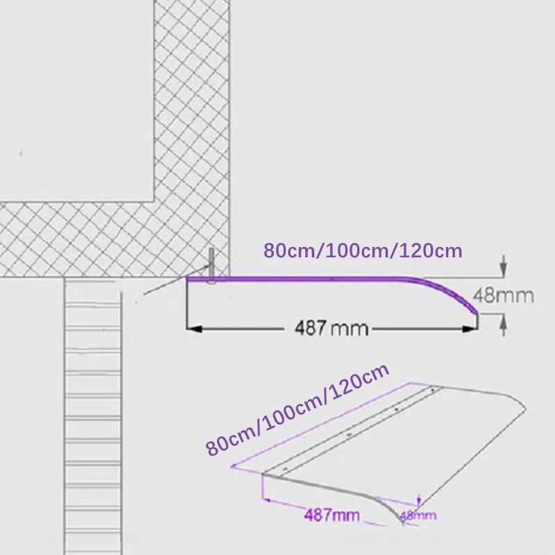 Simple Installation -- Its lightweight design, one-piece structure, and practical installation accessories allow you to easily and stably install this awning canopy on the wall. After drilling an 8mm hole in the wall according to the screw hole position and filling in the expansion screw, you can quickly fix the product with a gasket and self-tapping screw.