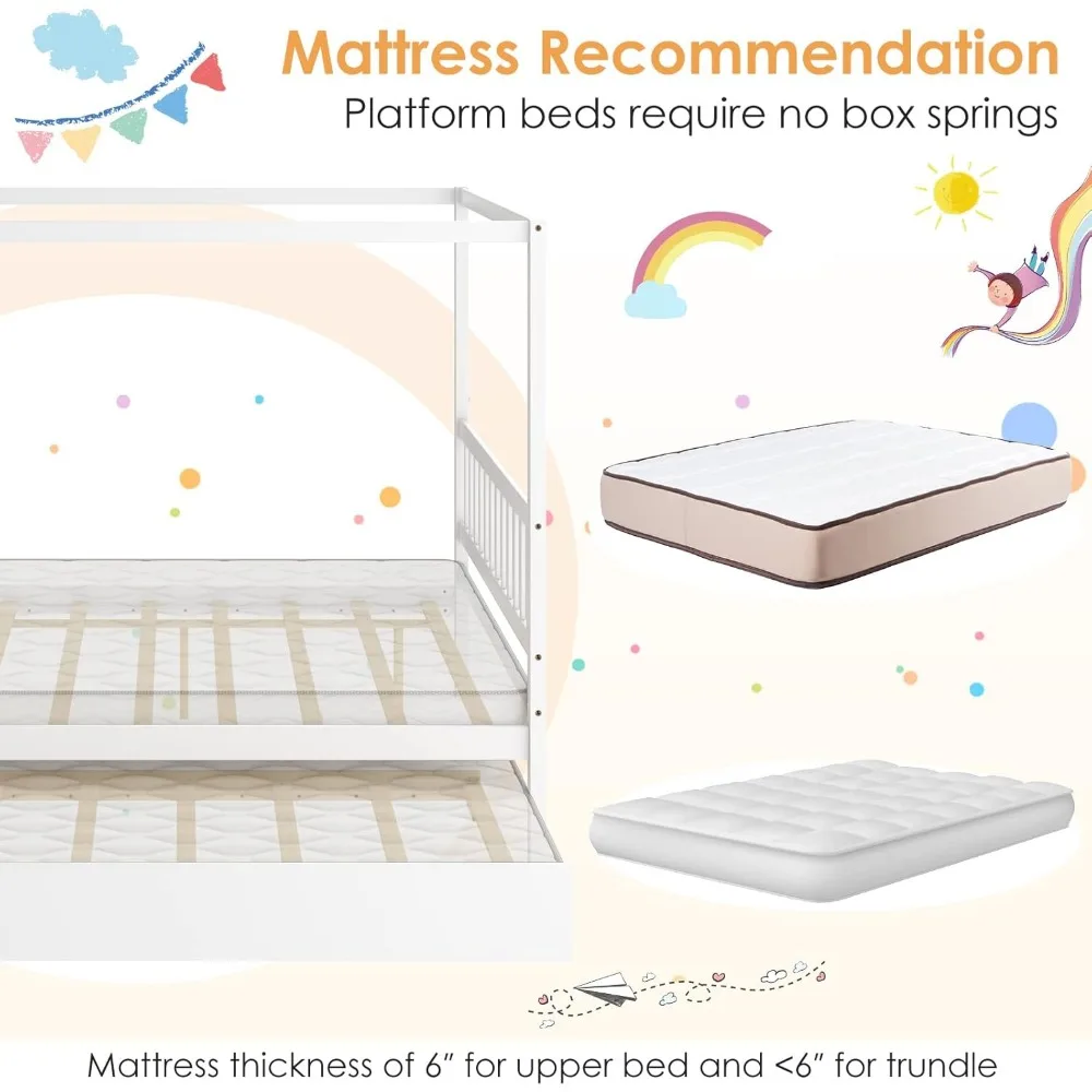 - [Practical 2-In-1 Design]The canopy bed features two beds, including a full platform bed and a trundle, where two kids can sleep together after a happy gathering. With extra resting space, the canopy bed is fairly suitable for small apartments with limited space.