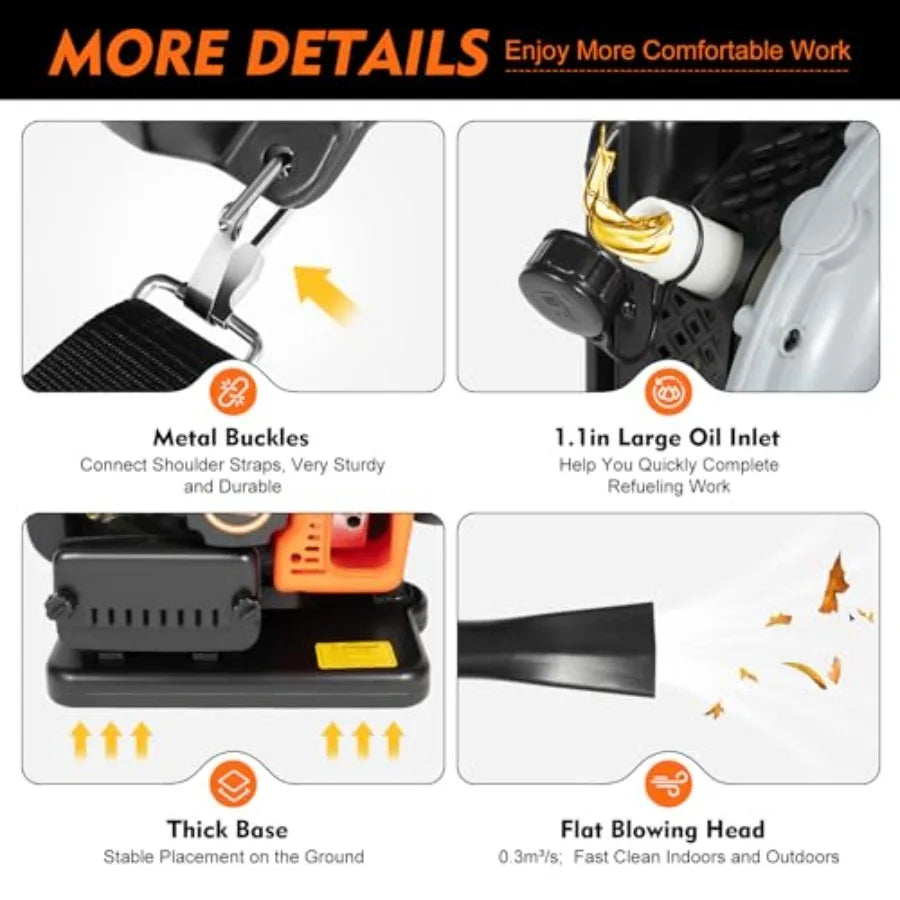 Gas-Powered Backpack Leaf Blower with Padded Harness