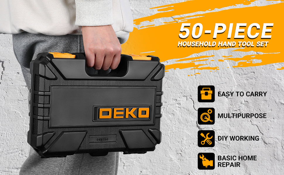The 50 piece tools are made of high-quality materials, beautiful and wear-resistant. The box is designed with tight card slots, the arrangement of tools is clear at a glance, and the storage is more orderly. It contains common household tools, which can meet the needs of families in multiple directions, such as repair, DIY projects, etc. Equipped with a practical and convenient toolbox to solve various household problem.