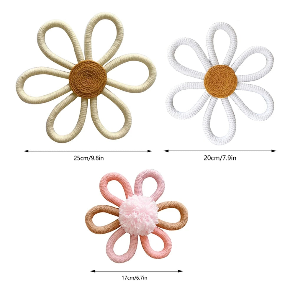 Girls Bedroom Decorations Pink Macrame Butterfly Sunflower Handmade Woven Sunflower