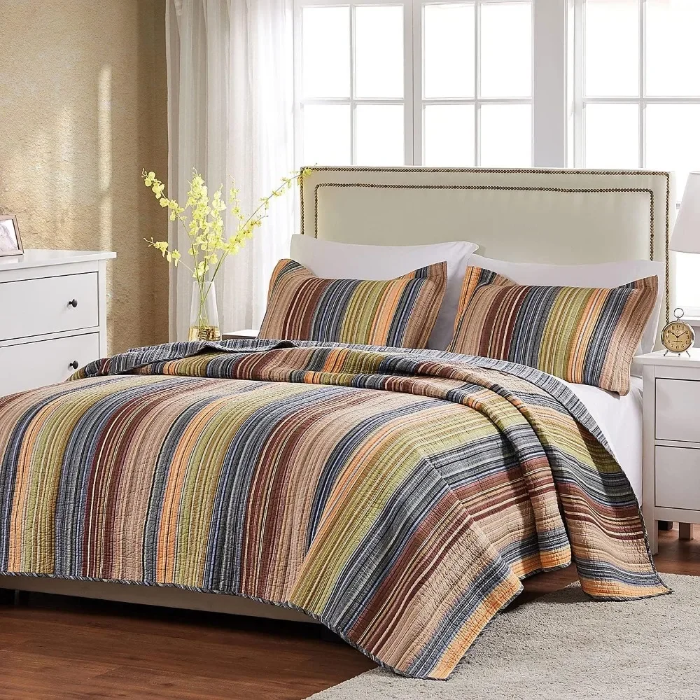 Greenland Home Katy - Reversible Stripe Quilt Set