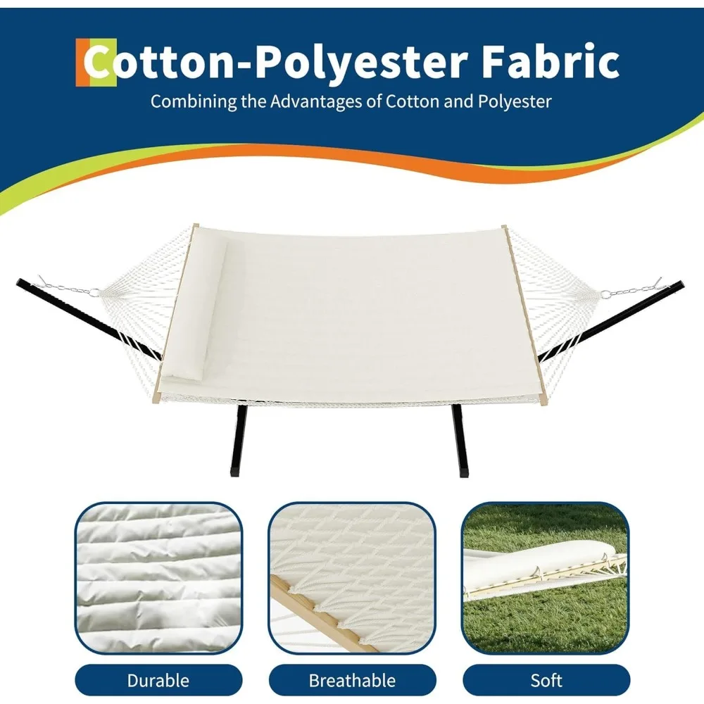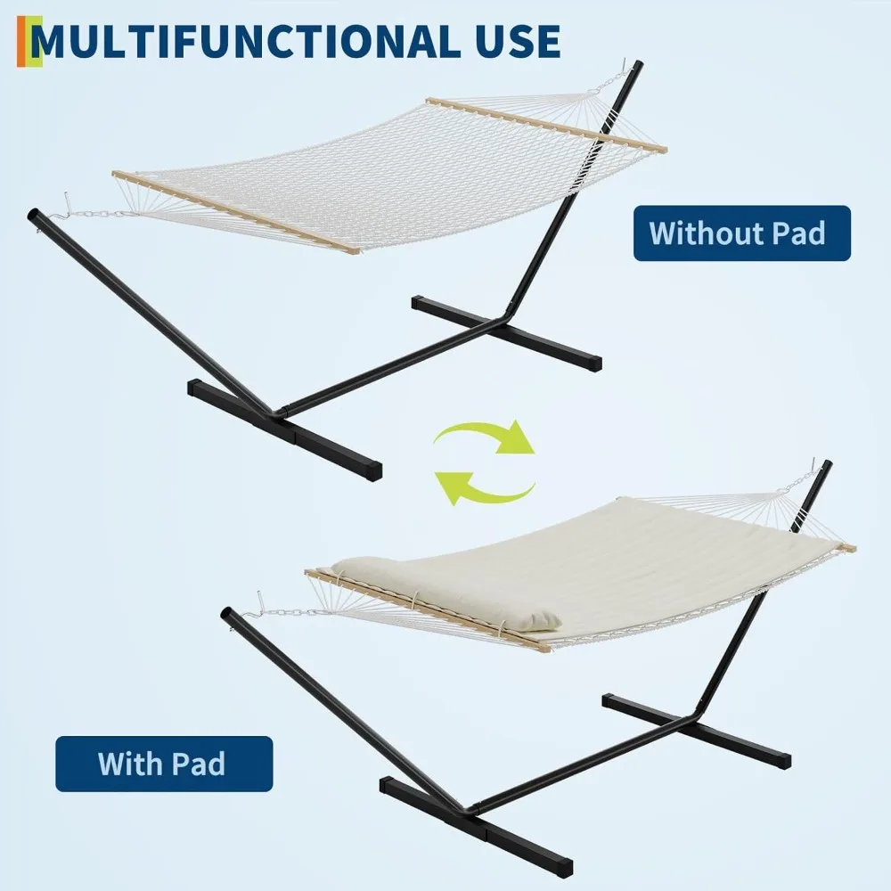 Hammock with Stand with Reversible Quilted Pad & Hardwood Spreader Bars