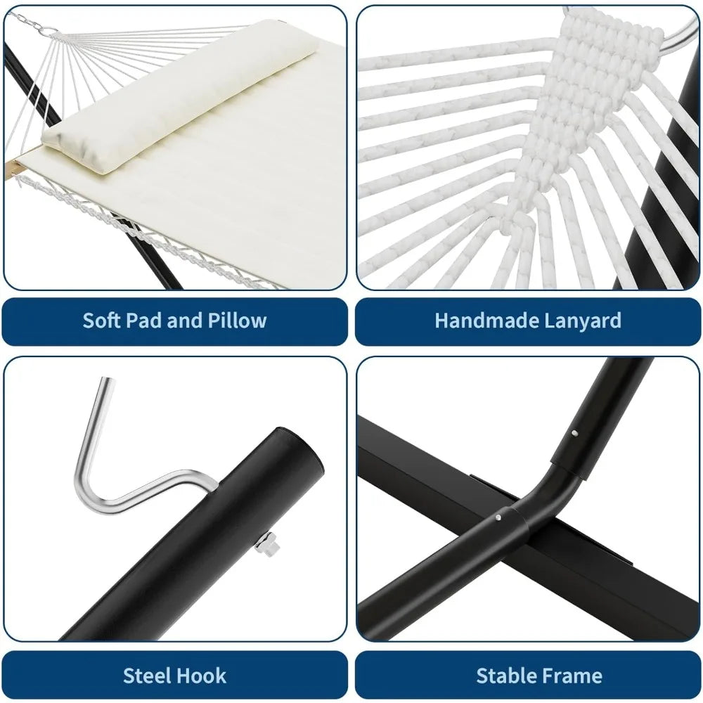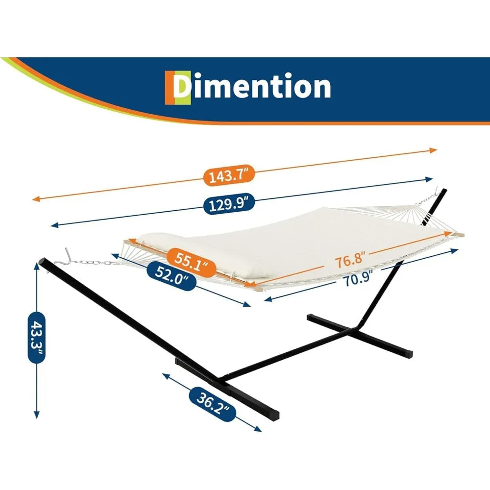 - Spacious Double Hammock: Designed for two people, this hammock with stand provides ample space for relaxing comfortably outdoors, perfect for couples or friends.