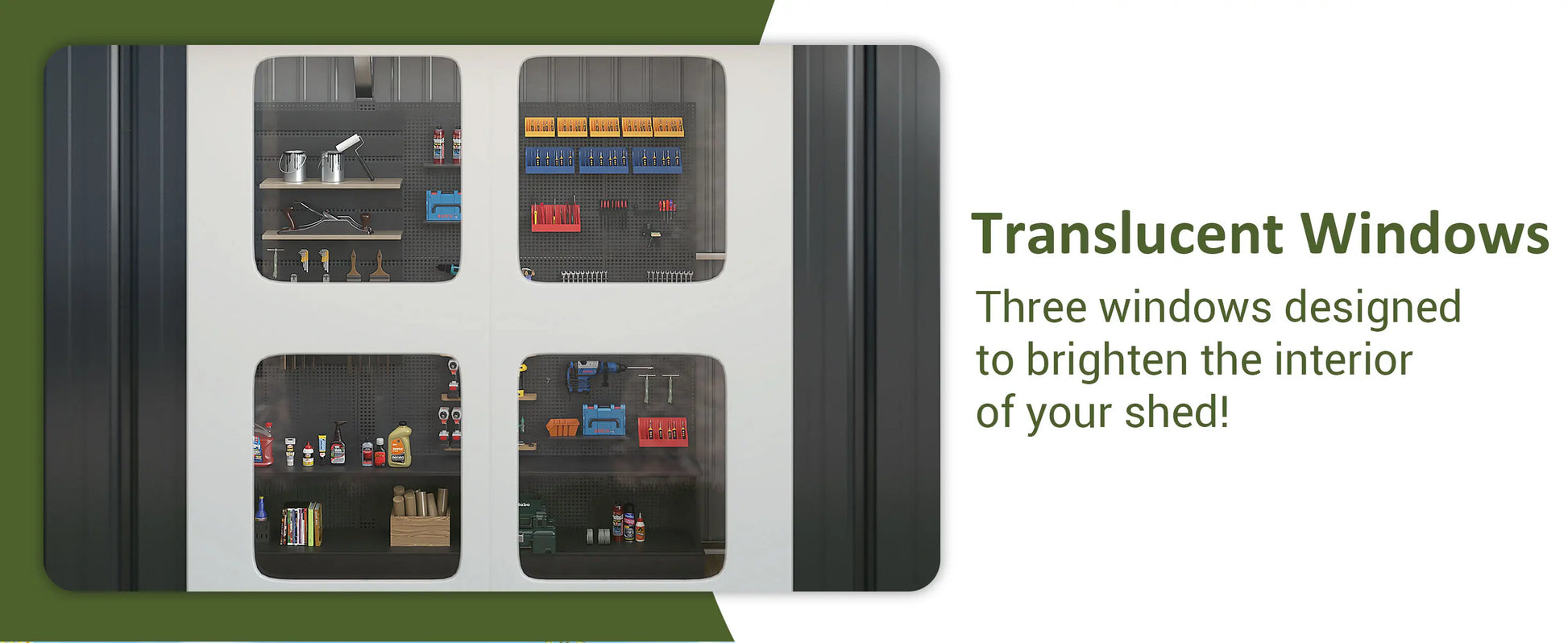 Multiple Sizes Available – Choose from a variety of dimensions to meet your storage needs, whether for tools, bikes, or larger outdoor equipment.