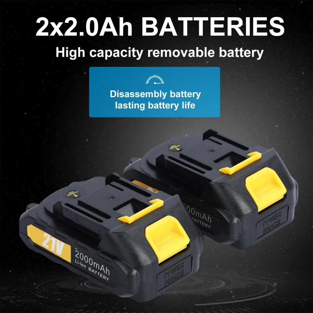 Outstanding Battery Life: Equipped with 2 x 2.0Ah Batteries, the rechargeable electric chain saw allows continuing lasting for up to 120 minutes (2 Batteries). Rechargeable batteries with self-overload and temperature protection provide a much longer battery life. Besides, there is a power display on the battery, prompting you to charge in time.
