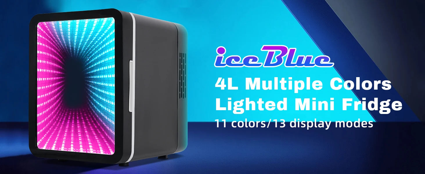 iceBlue 13 Display Mode Dimmable LED Light Mirror Mini Fridge
