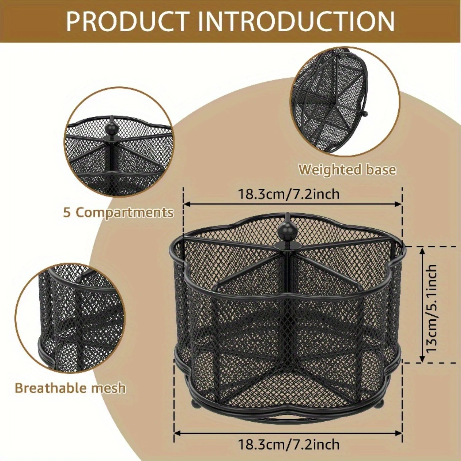 1. Modernize your kitchen with our 5-Compartment Iron Utensil Holder featuring a stylish plaid design and a convenient 360° spin feature for easy access to your cooking tools. Keep your kitchen organized and clutter-free with this versatile kitchen accessory.