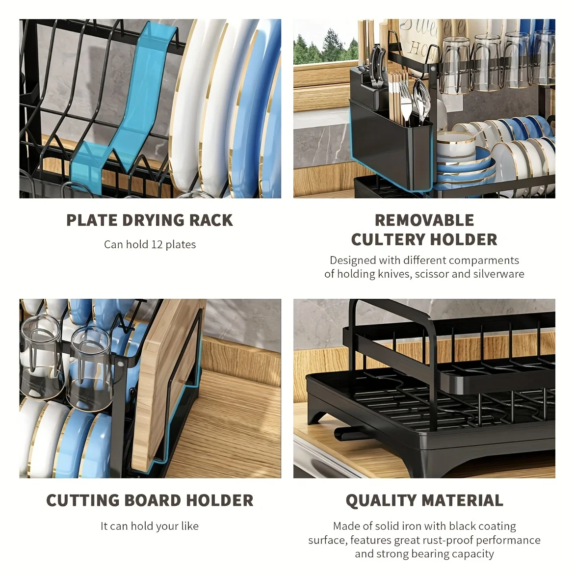 Perfect for small or large kitchens, this drying rack maximizes space and maintains order while adding a touch of elegance.