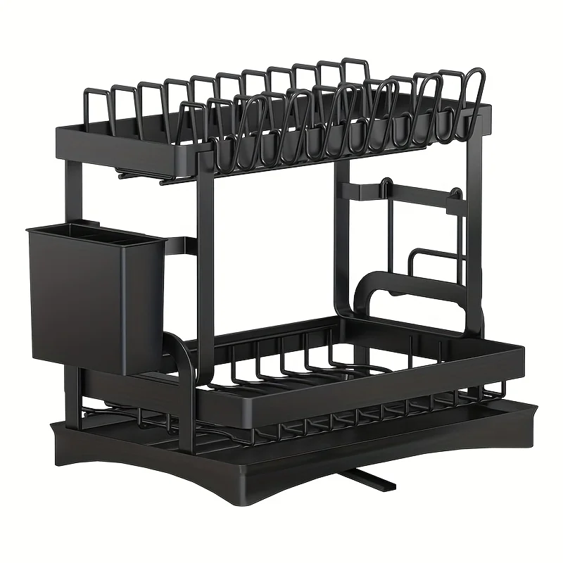 Keep your kitchen neat and organized with this 2-Tier Metal Dish Drying Rack. Designed for efficiency and style, it features a durable, rust-resistant metal frame and a sleek black finish that complements any modern kitchen. The two-tier structure provides ample space for plates, cups, bowls, and utensils, while the drainboard helps collect water and keeps your countertop dry and clean.