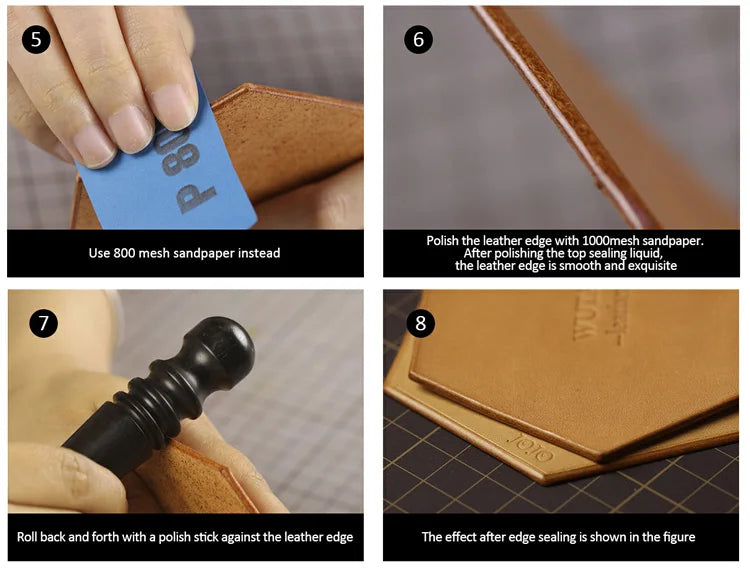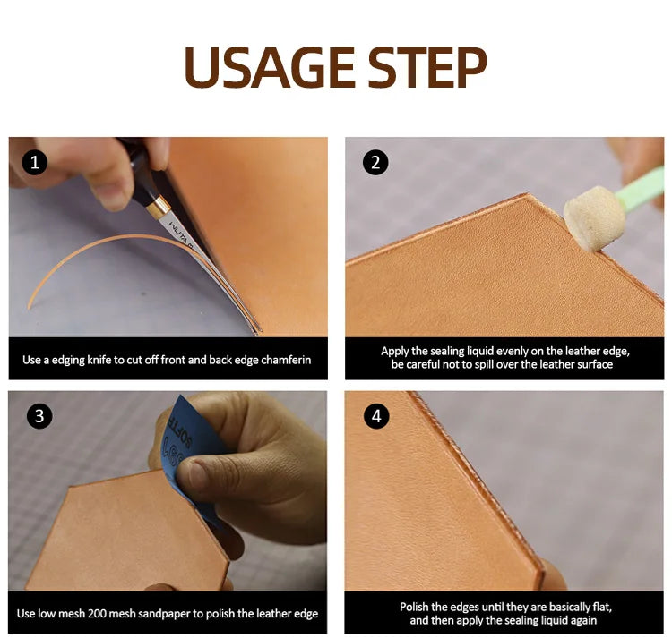 5----DIRECTIONS-After beveler the leather edge, apply with florenole treatment agent or edge kote Pro. Repeat as necessary for a smooth edge. Rub gently for a more luminous finish.