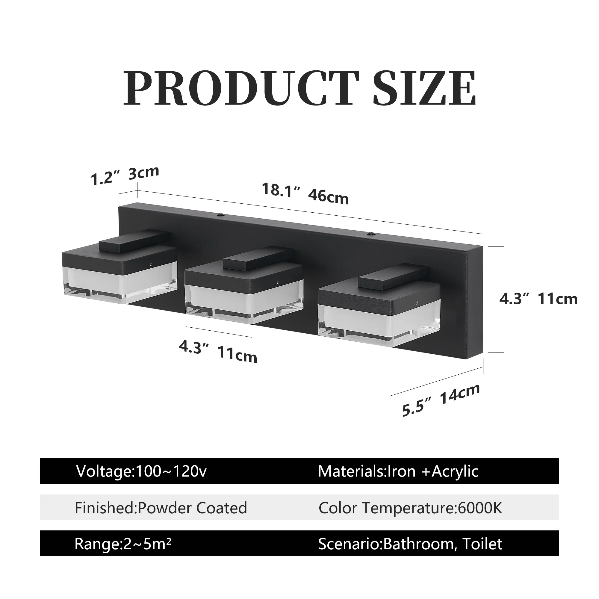 Modern LED Vanity 3-5 Lights for Bathroom Acrylic Black/Chrome Light Over Mirror