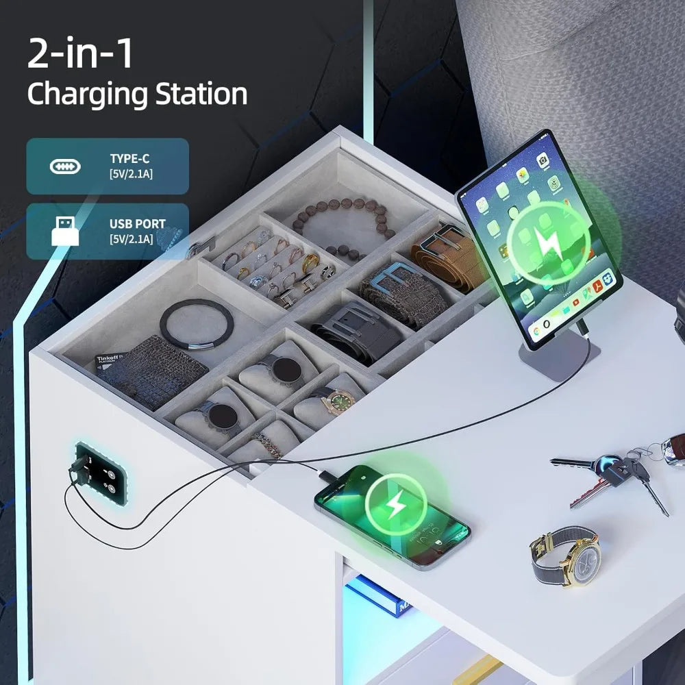 - 🔋【Convenient for Charging Device】 - bedside table with charging station free your charging requirements. Type-C and USB ports are built-in for this modern nightstand, which is convenient for you to hold and charge a bedside lamp, phone, smartwatch, and other electronic devices