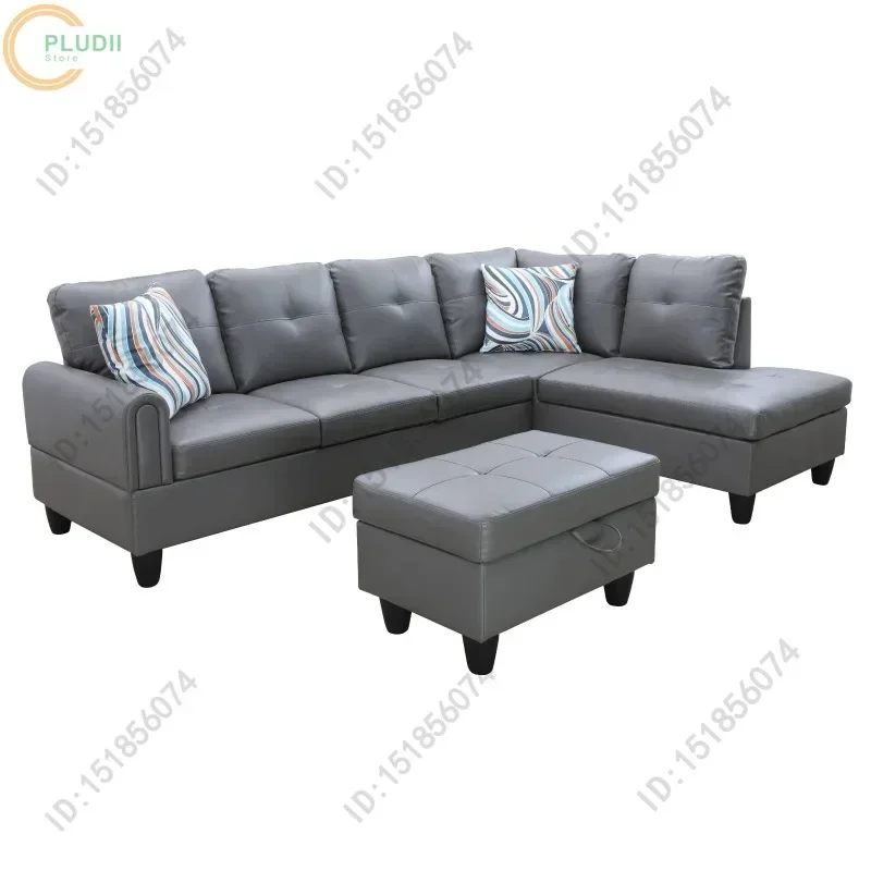 【Modern Luxury】Dark Grey Faux Leather Sectional Sofa – Sleek Sophistication for Urban Living!【Premium Faux Leather Upholstery】
